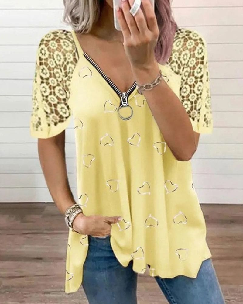 Elegante Spitzenbluse mit V-Ausschnitt und kurzen Ärmeln