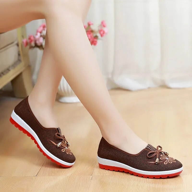 Dyk ned i den tidløse elegance i vores flade sko, hvis klassiske charme smelter sammen med moderne komfort. Disse sko er dekoreret med udsøgte broderier, der fejrer en rig kulturel arv, og har et delikat bånddesign, der tilføjer et strejf af femininitet og raffinement og passer til enhver garderobe.