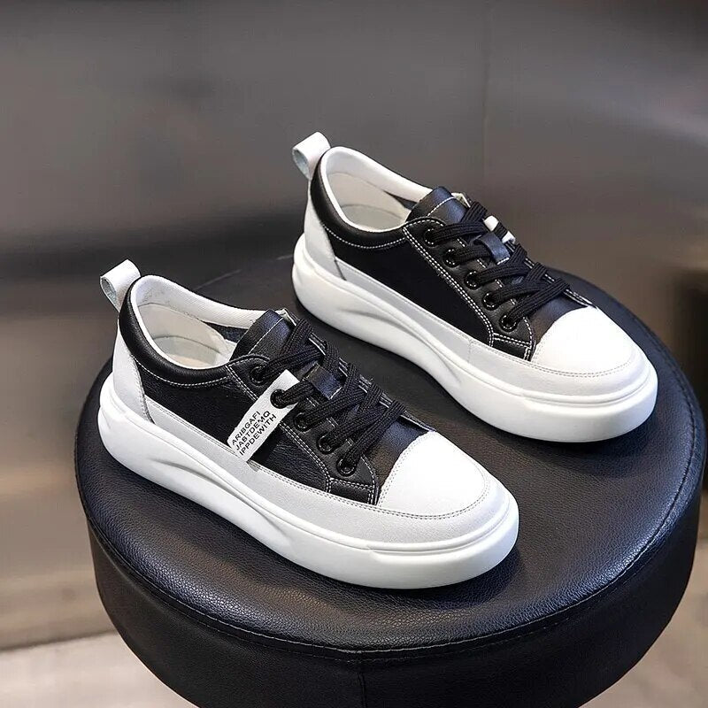 Med vores læder-sneakers er du på forkant med moden. Fremstillet af læder af høj kvalitet, tilbyder disse sneakers både raffinement og holdbarhed. Den tykke plateau-sål øger ikke kun diskret din højde, men giver også uovertruffen komfort og støtte hele dagen.