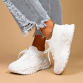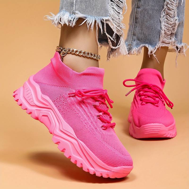 Vi præsenterer vores chunky sneakers, hvor topmoderne design møder uovertruffen komfort. Disse sneakers er lavet af let og åndbart materiale, der holder dine fødder kølige og behagelige hele dagen. Det sokkelignende design sikrer en behagelig, næsten skræddersyet pasform, mens snørelukningen gør det nemt at justere. Perfekte til aktive kvinder, der værdsætter både stil og funktionalitet.