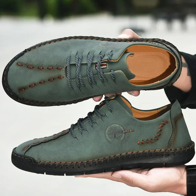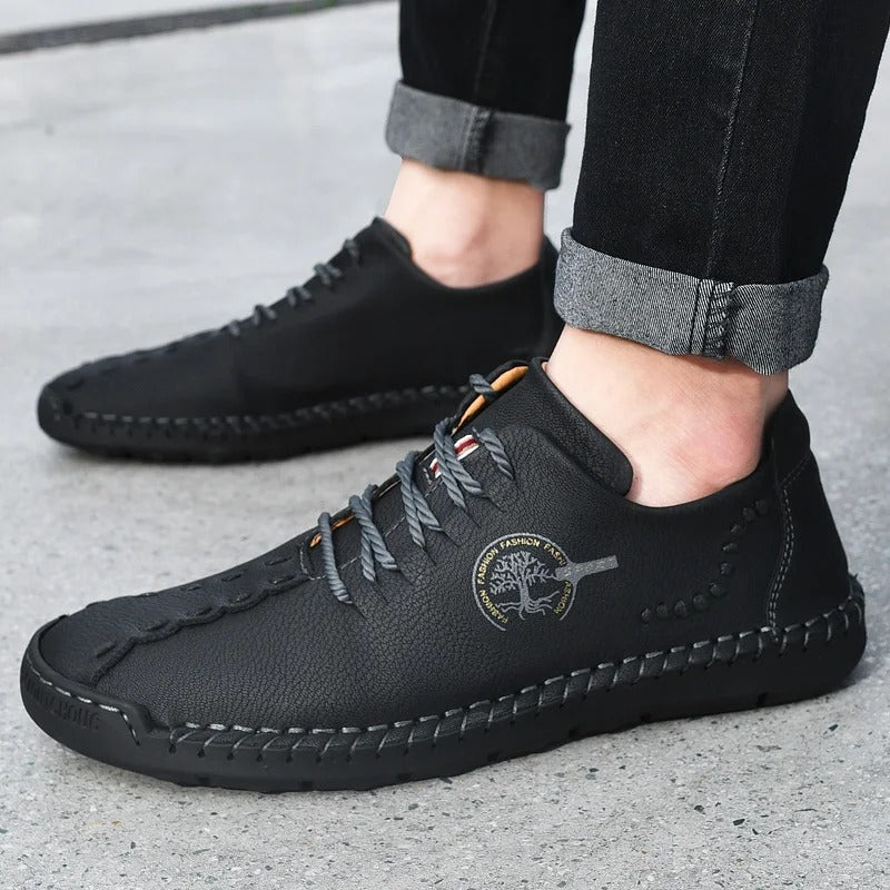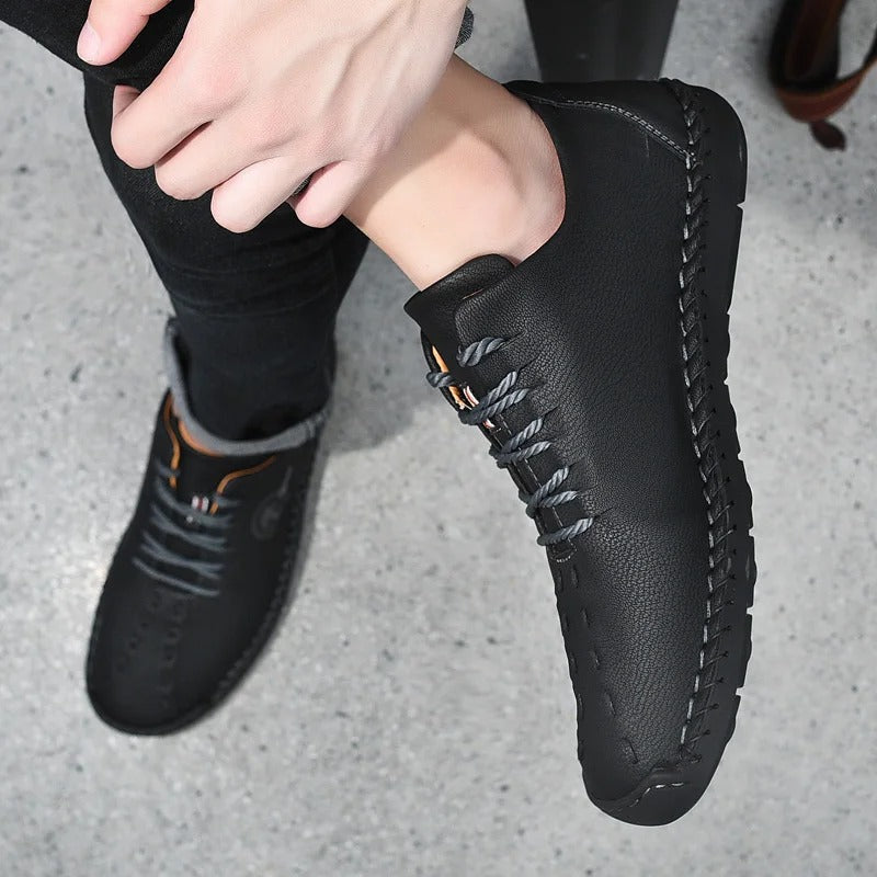 Oplev uovertruffen komfort og tidløs stil med vores håndlavede lædersko, der er et bevis på ekstraordinært håndværk og kvalitet. Disse sidelæns syede sko med sejlsnørebånd er designet til kræsne personer, der søger både elegance og komfort i deres fodtøj. Den åndbare læderkonstruktion sikrer, at dine fødder forbliver kølige og komfortable hele dagen.