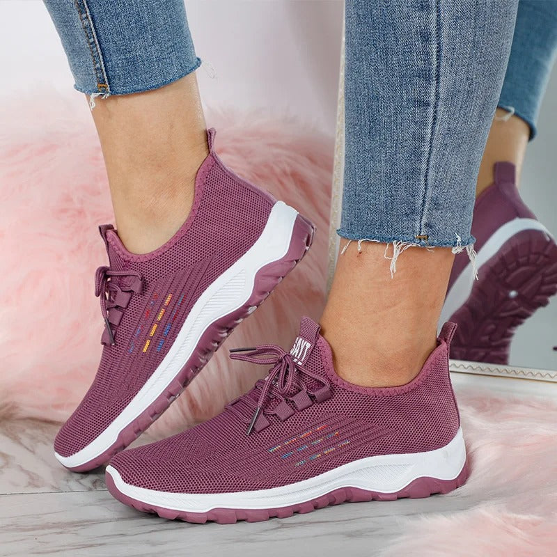 Træd ind i en verden af uovertruffen komfort og ubesværet stil med vores nye mesh-sneakers, designet til kvinder, der lever en aktiv og moderigtig livsstil. Disse sneakers er indbegrebet af let design og sikrer, at du kan bevæge dig frit og behageligt hele dagen. Det åndbare mesh-materiale holder dine fødder kølige og friske, selv når du er på farten.