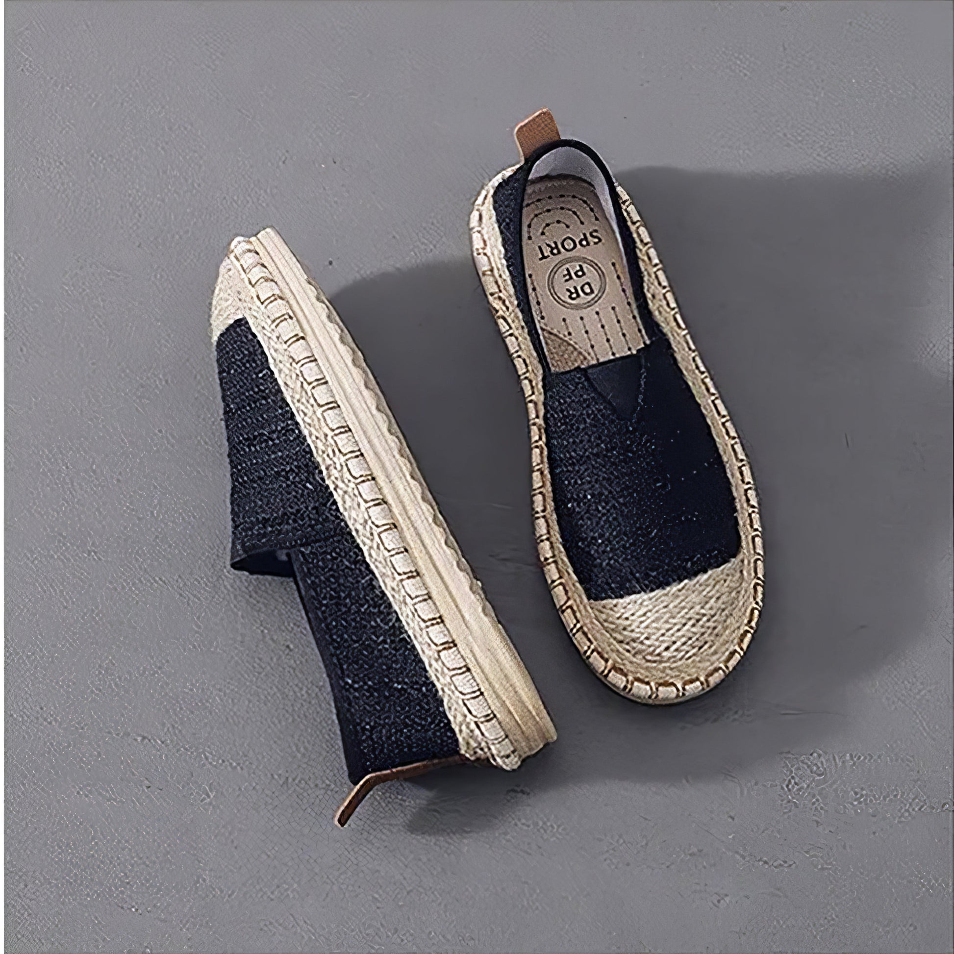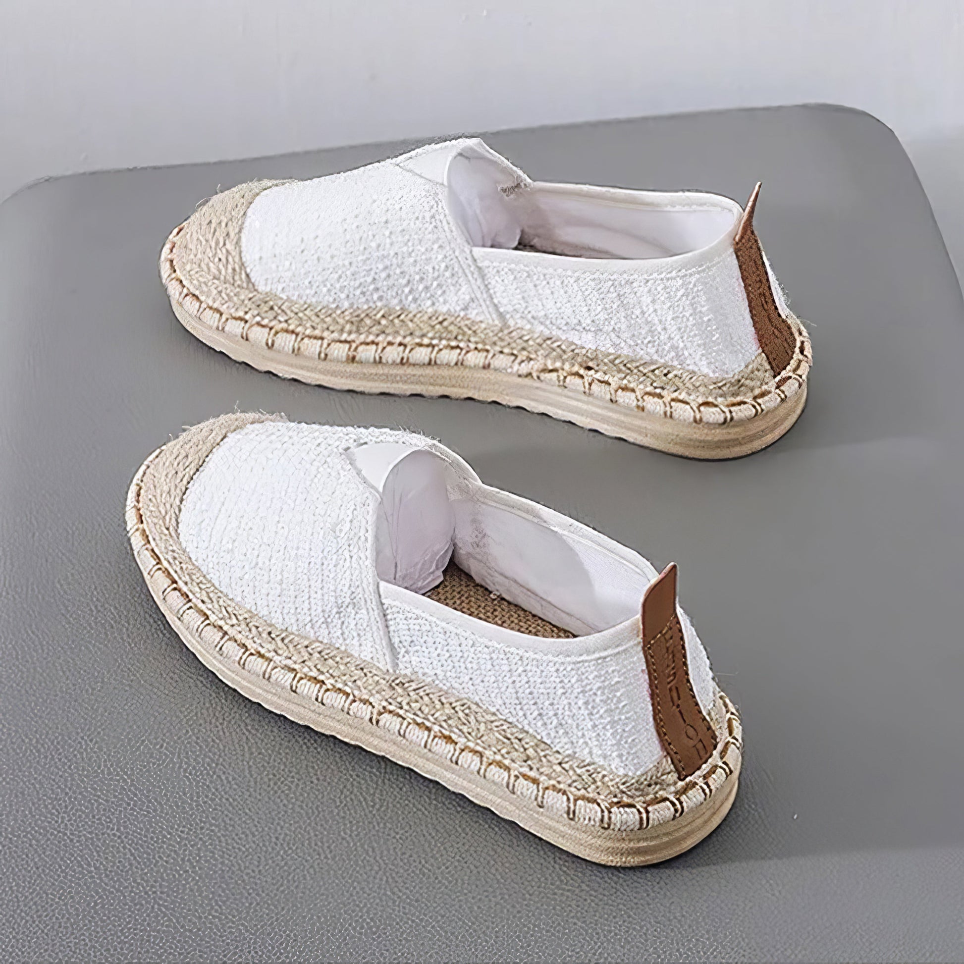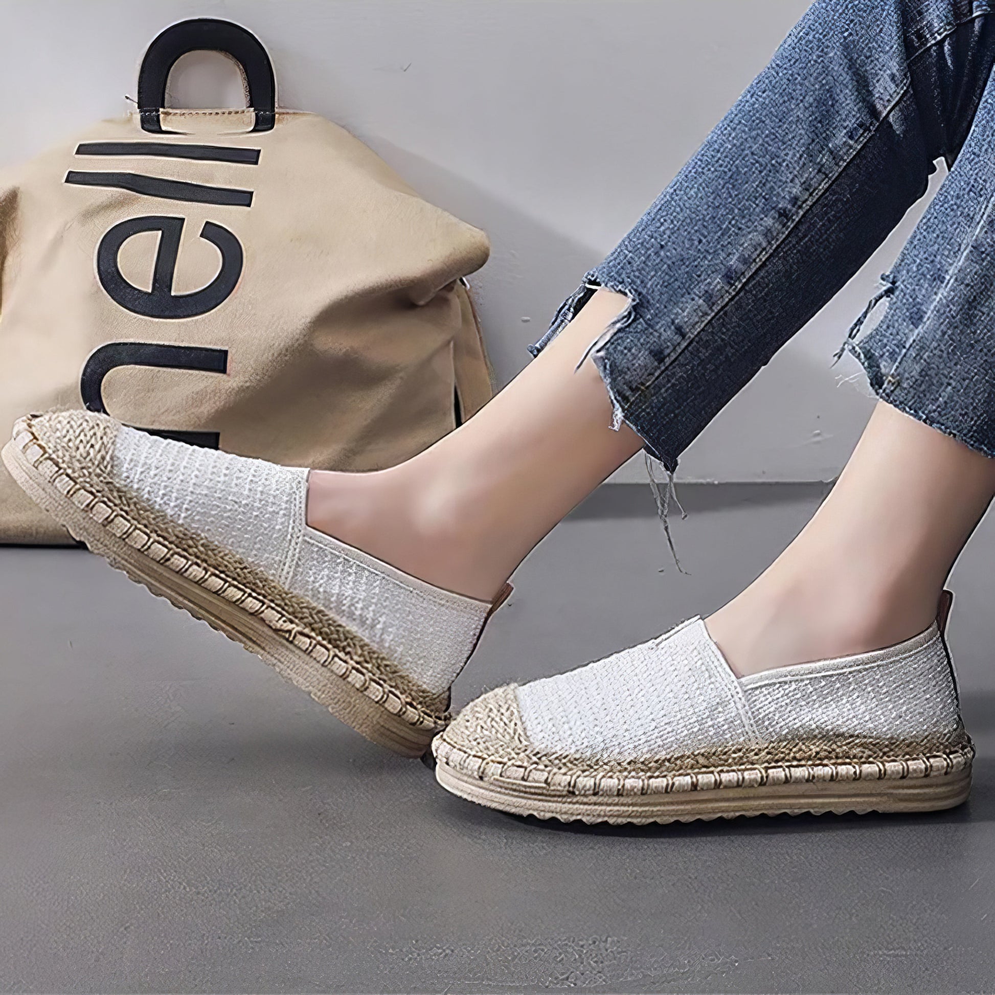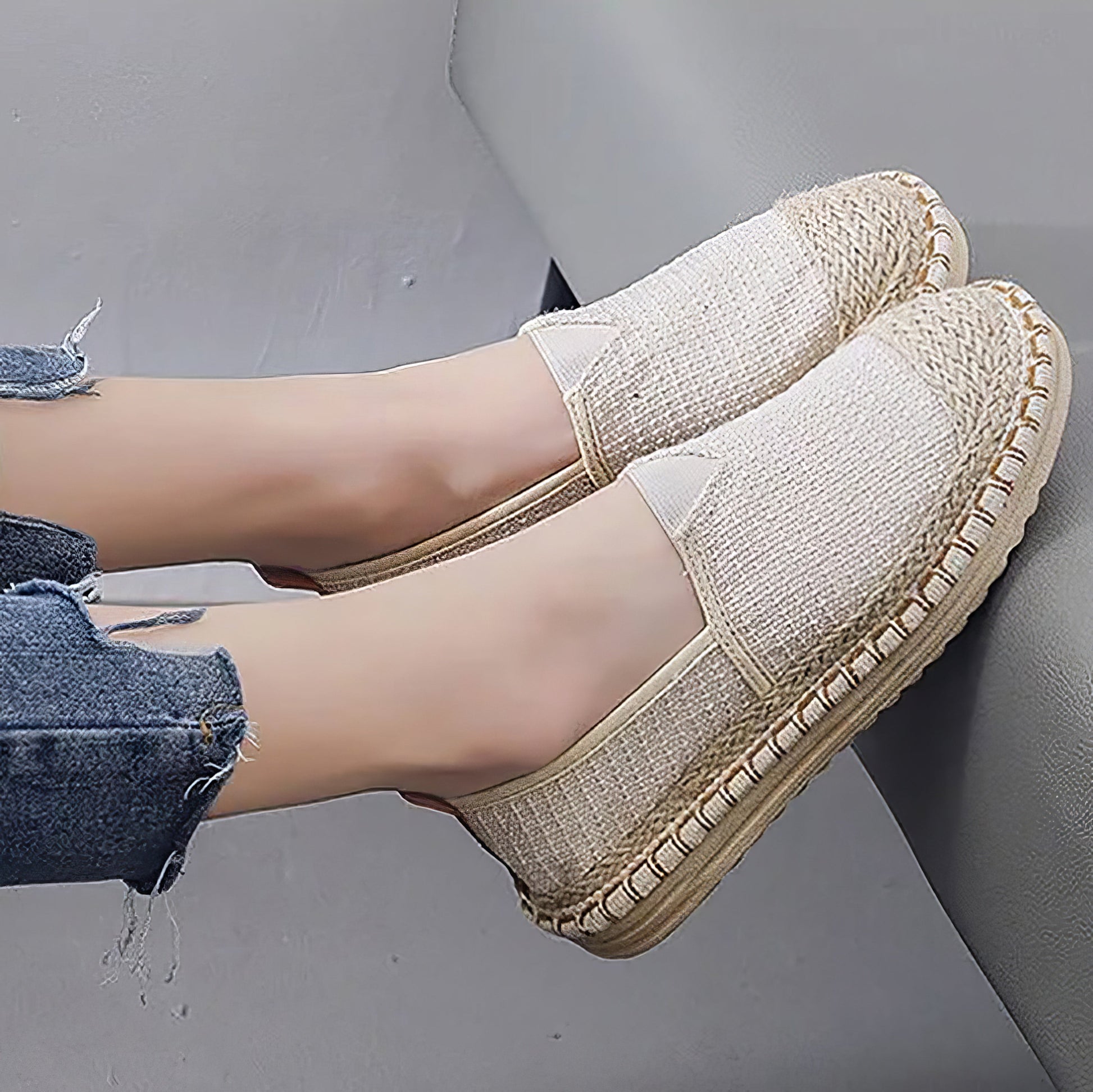 Vores flade sko tilbyder uovertruffen komfort og stil og er den perfekte tilføjelse til enhver kvindes garderobe. Disse slip-on espadriller er håndvævet og sikrer åndbarhed samt en let følelse, der holder dine fødder kølige og komfortable hele dagen. Canvas-materialet giver ikke kun holdbarhed, men tilføjer også dit outfit et afslappet, smart præg.
