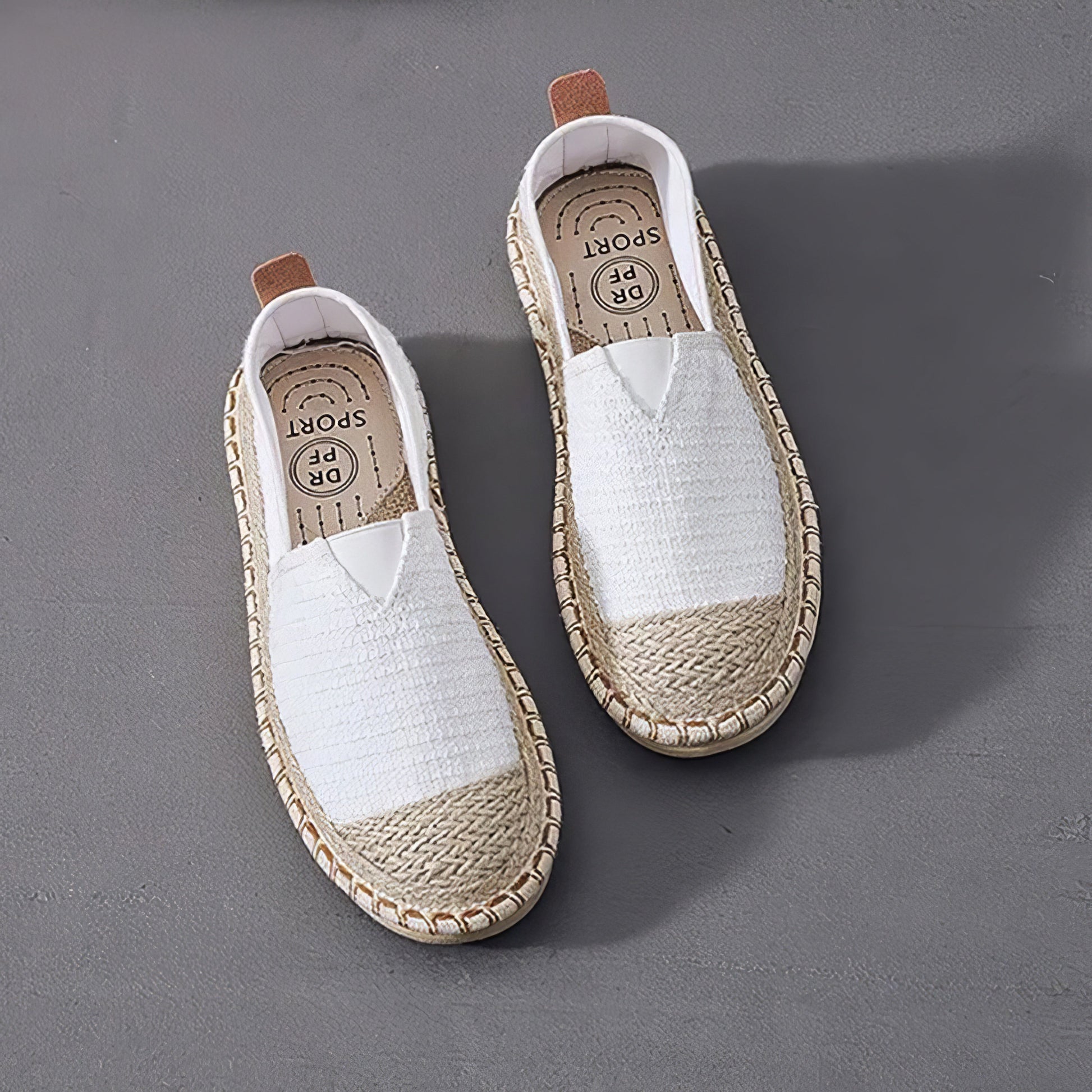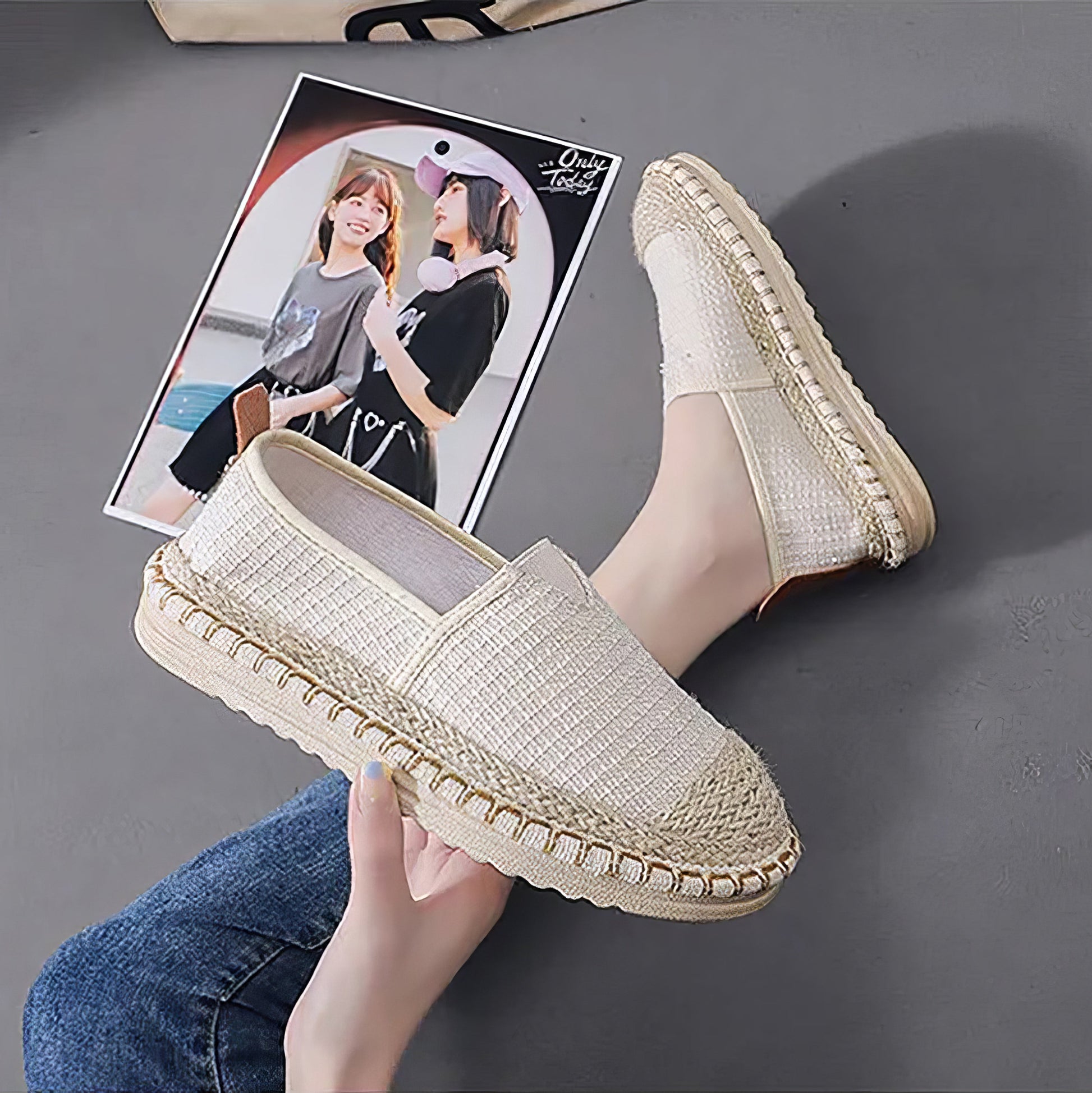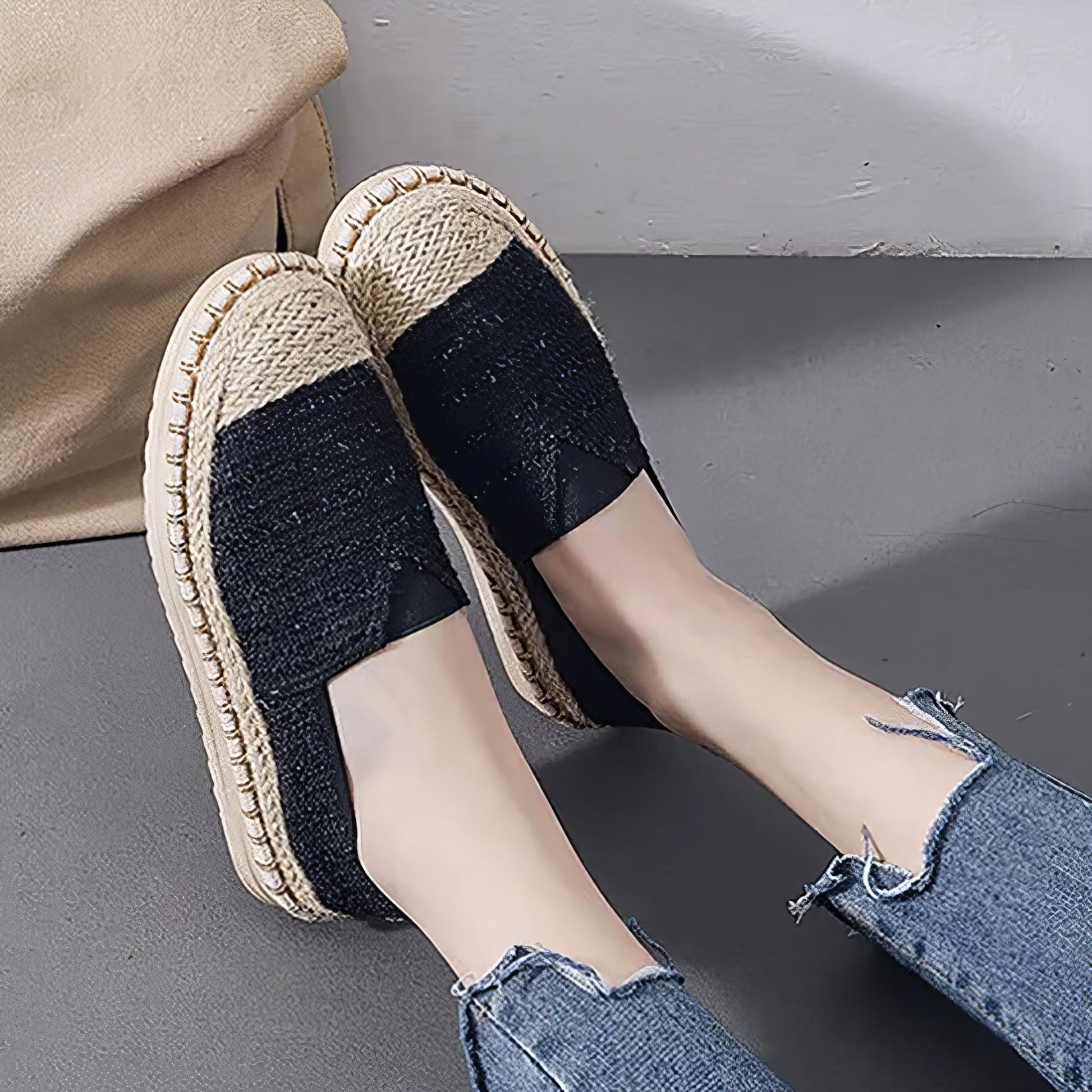 Vores flade sko tilbyder uovertruffen komfort og stil og er den perfekte tilføjelse til enhver kvindes garderobe. Disse slip-on espadriller er håndvævet og sikrer åndbarhed samt en let følelse, der holder dine fødder kølige og komfortable hele dagen. Canvas-materialet giver ikke kun holdbarhed, men tilføjer også dit outfit et afslappet, smart præg.