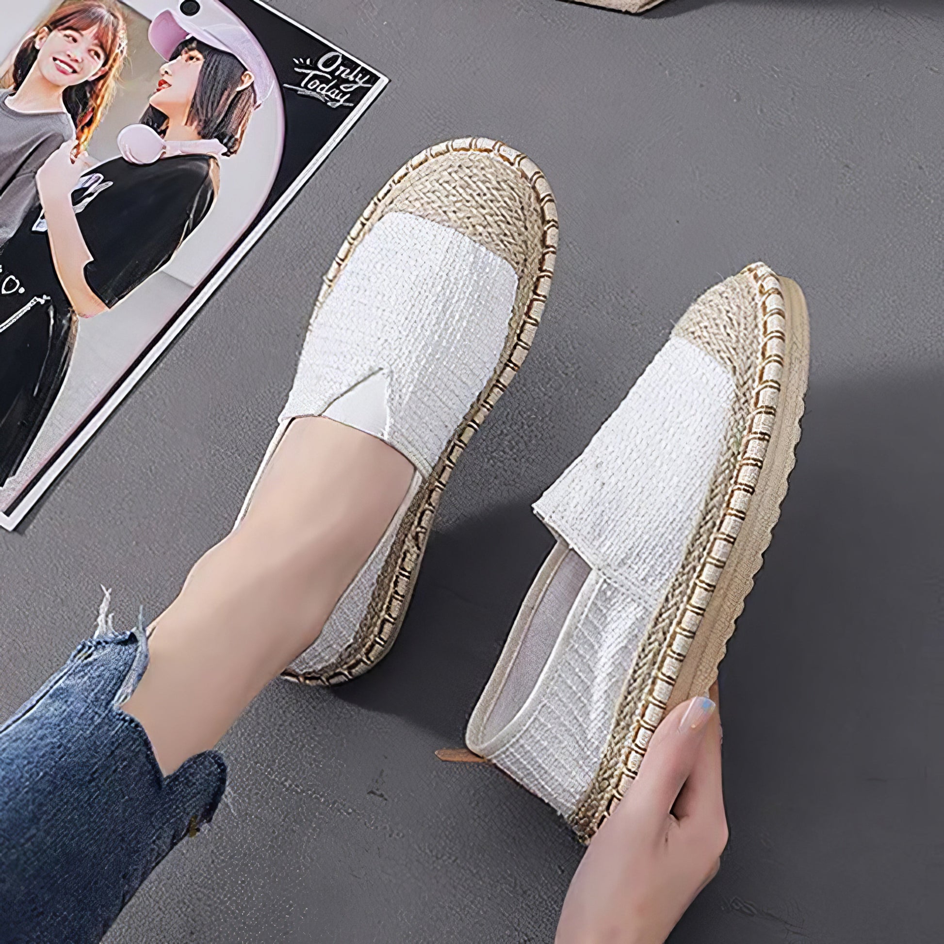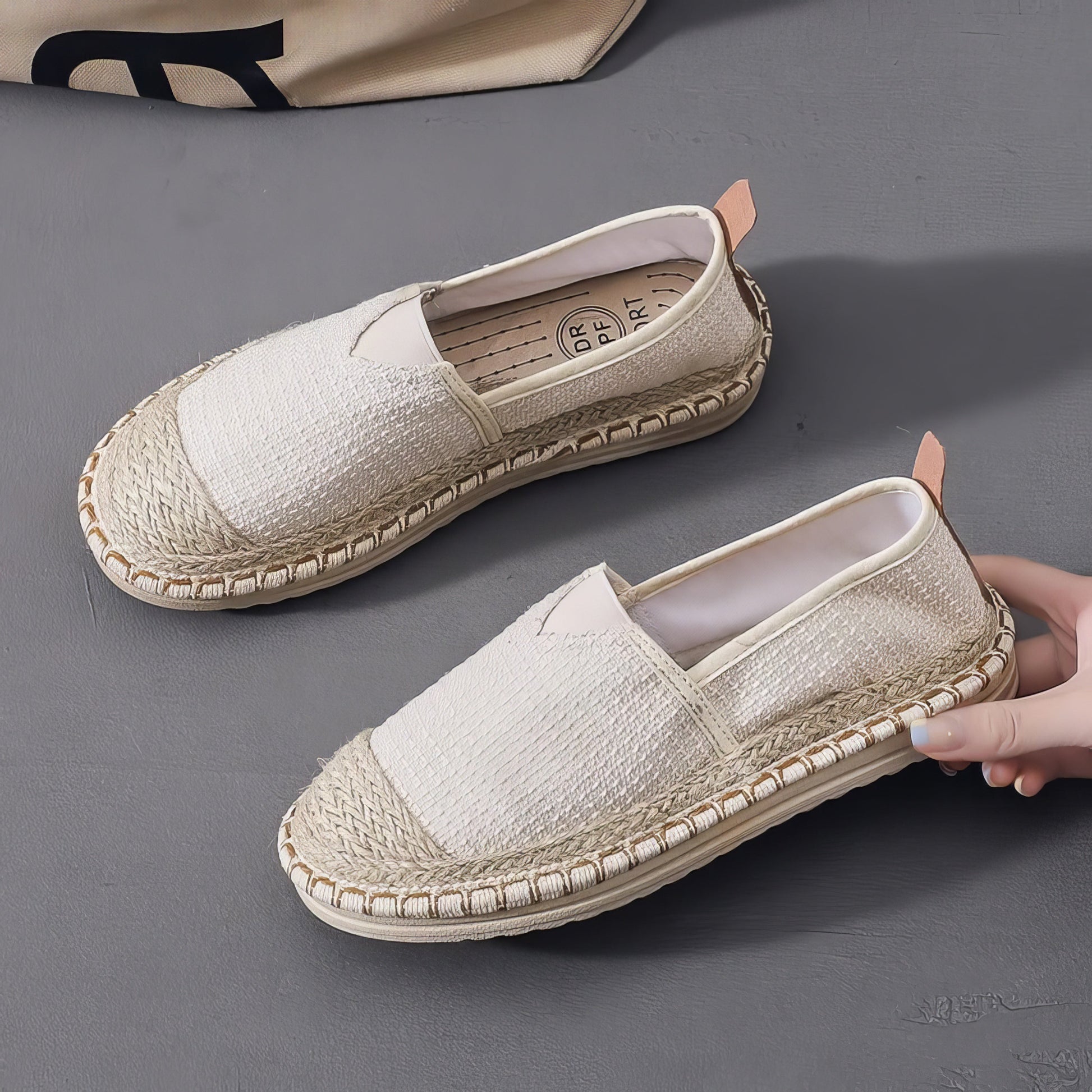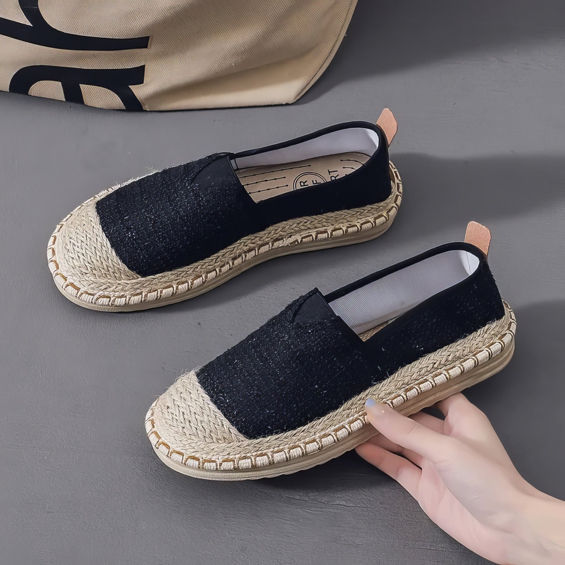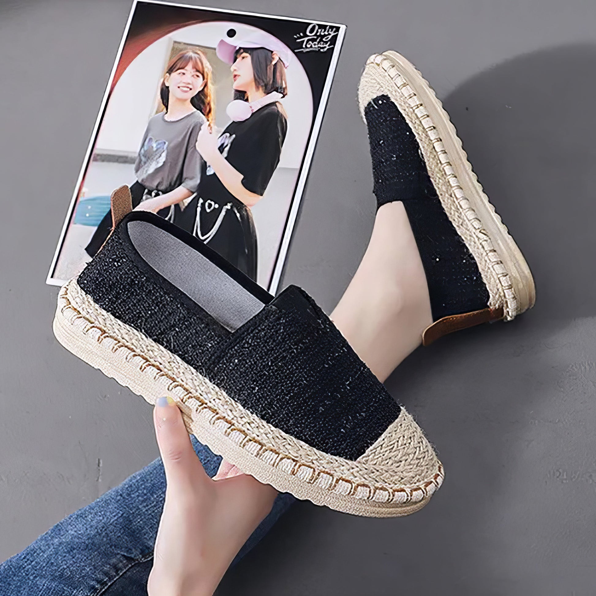 Vores flade sko tilbyder uovertruffen komfort og stil og er den perfekte tilføjelse til enhver kvindes garderobe. Disse slip-on espadriller er håndvævet og sikrer åndbarhed samt en let følelse, der holder dine fødder kølige og komfortable hele dagen. Canvas-materialet giver ikke kun holdbarhed, men tilføjer også dit outfit et afslappet, smart præg.
