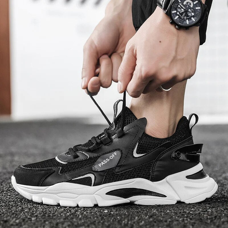 Slip dit fulde potentiale løs med vores sportssneakers, der er designet til den moderne atlet, som kræver både ydeevne og stil. Disse sneakers har et åndbart mesh-overmateriale, der sikrer, at dine fødder forbliver kølige og tørre selv under de mest intense træningspas. Anti-slip- og dæmpningsteknologien sikrer et sikkert greb og fremragende stødabsorbering, som beskytter dine led og forbedrer din løbeoplevelse på alle terræner.