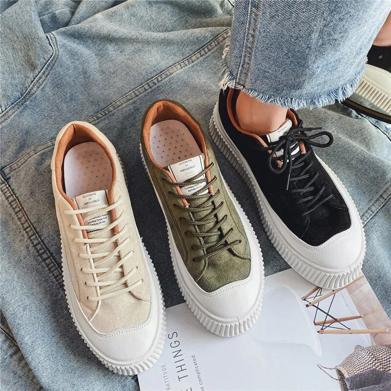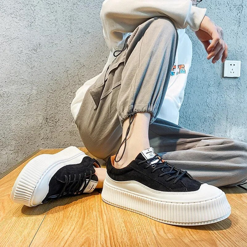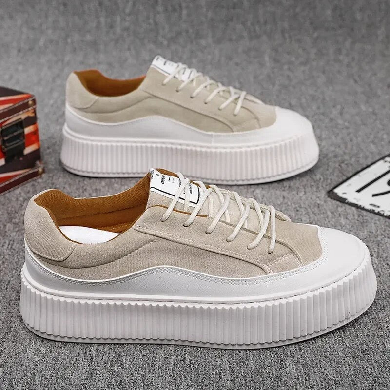 Træd ind i en verden af uovertruffen komfort og stil med vores plateau-sneakers. Disse sneakers redefinerer afslappet luksus og kombinerer den bløde fornemmelse af ruskind med en tyk sål, der absorberer hvert skridt. Det forhøjede plateau øger ikke kun din højde, men sikrer også et behageligt skridt, uanset om du spadserer gennem byens gader eller nyder en afslappet dag udendørs.