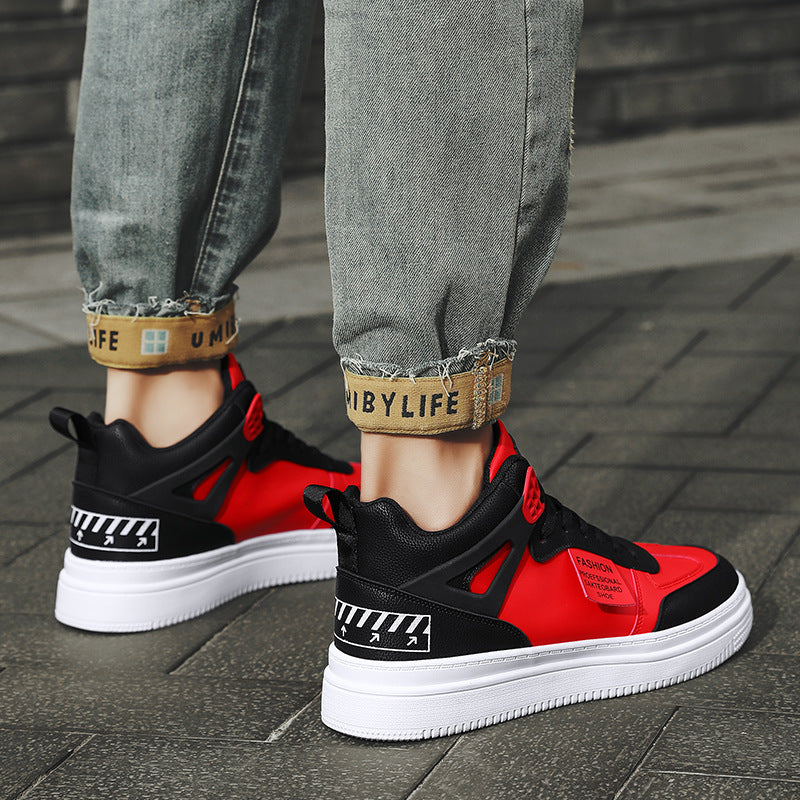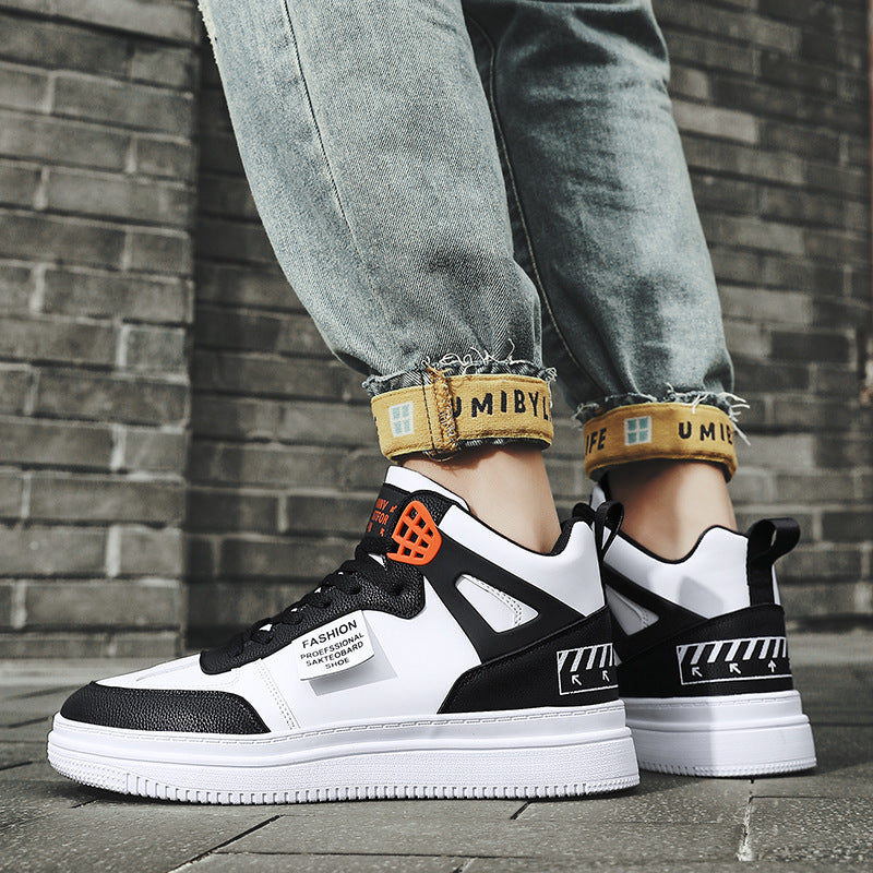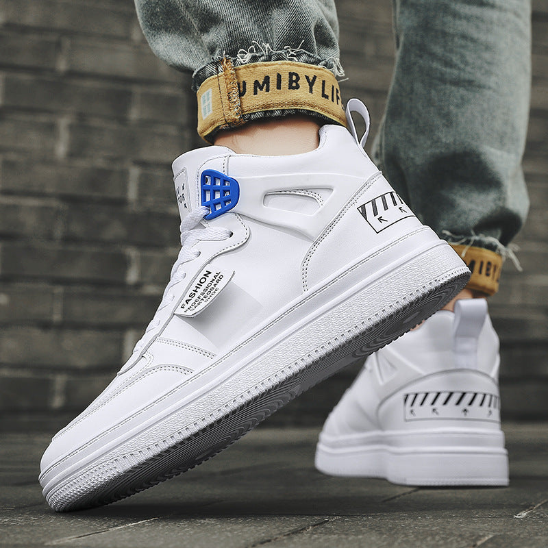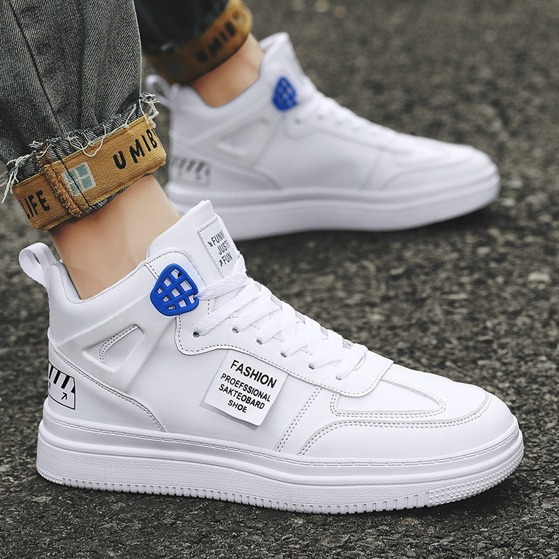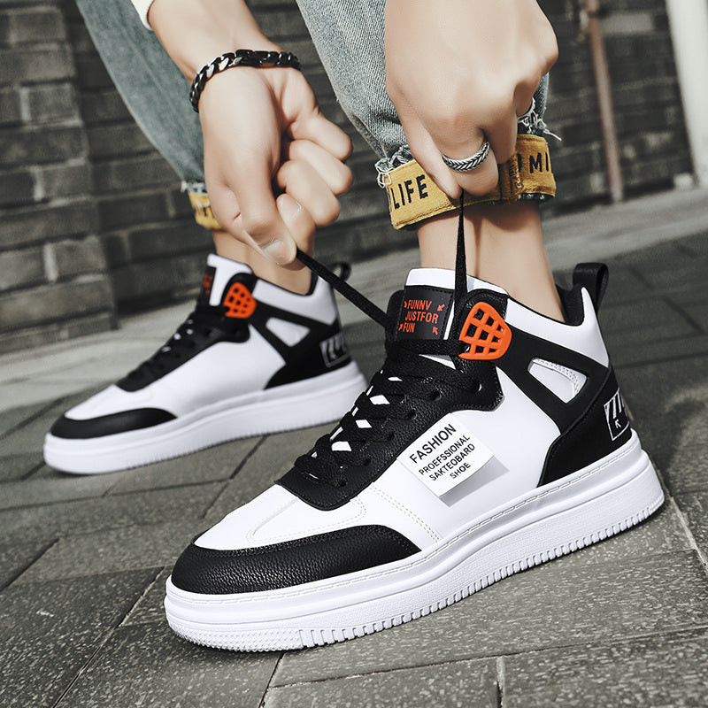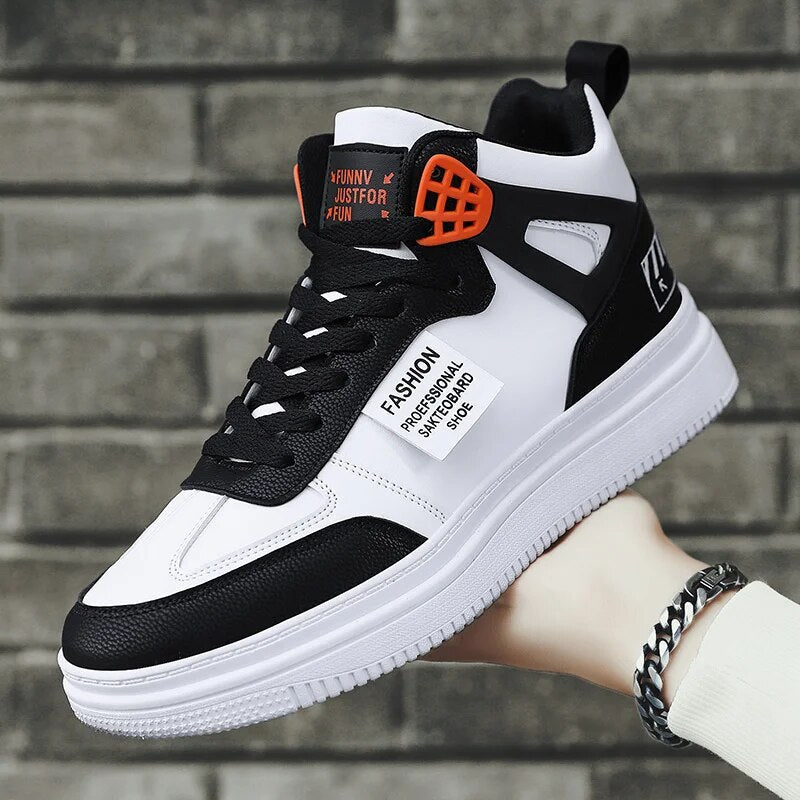 Med vores High-Top-sneakers, hvor mode møder uovertruffen komfort, er du på forkant med tiden. Disse sneakers er udstyret med en tyk plateau-sål, der ikke kun giver et højdeforløb, men også en enestående dæmpning under fødderne, så hvert skridt føles som et spring ind i blødhed. Den slidstærke snørelukning sikrer en sikker pasform, mens High-Top-silhuetten giver bedre støtte til anklen.