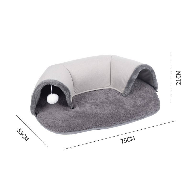 Denne innovative kattehule kombinerer en hyggelig soveplads med en spændende legetunnel, så den passer til både afslappende og aktive øjeblikke.