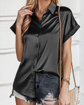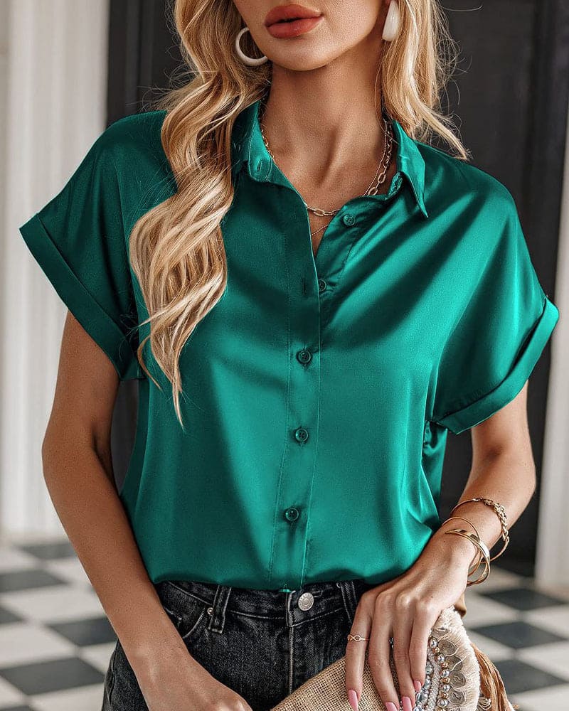 Stilfuldt design: Korte ærmer og en fin satin-knap giver et diskret strejf af luksus.