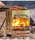 Den foldbare Dulopi trækoger i rustfrit stål er en kompakt, bærbar løsning til madlavning udendørs og camping