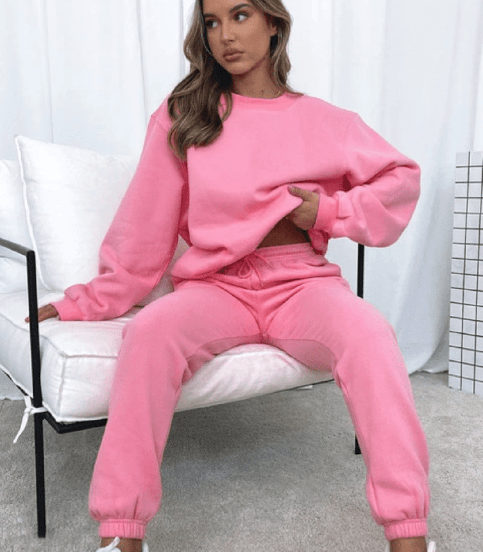 Sætindhold: Overdel med lynlås + bukser med elastik i taljen