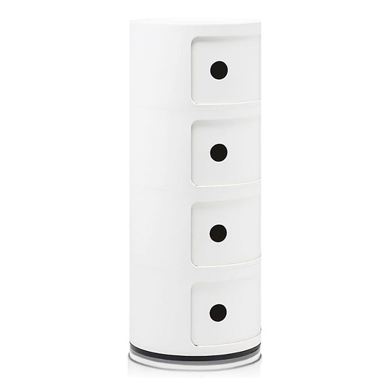 Allerede i 1969 designet af Anna Castelli Ferrieri begejstrer det stadig med sit klare formsprog og alsidige funktionalitet. Det modulære system af lette, runde elementer kan bruges fleksibelt – som natbord i børneværelset, som opbevaring på kontoret eller som dekorativt ordnende element i opholdsrummet. Et stykke designhistorie, der forbinder stil og hverdagsbrug perfekt.