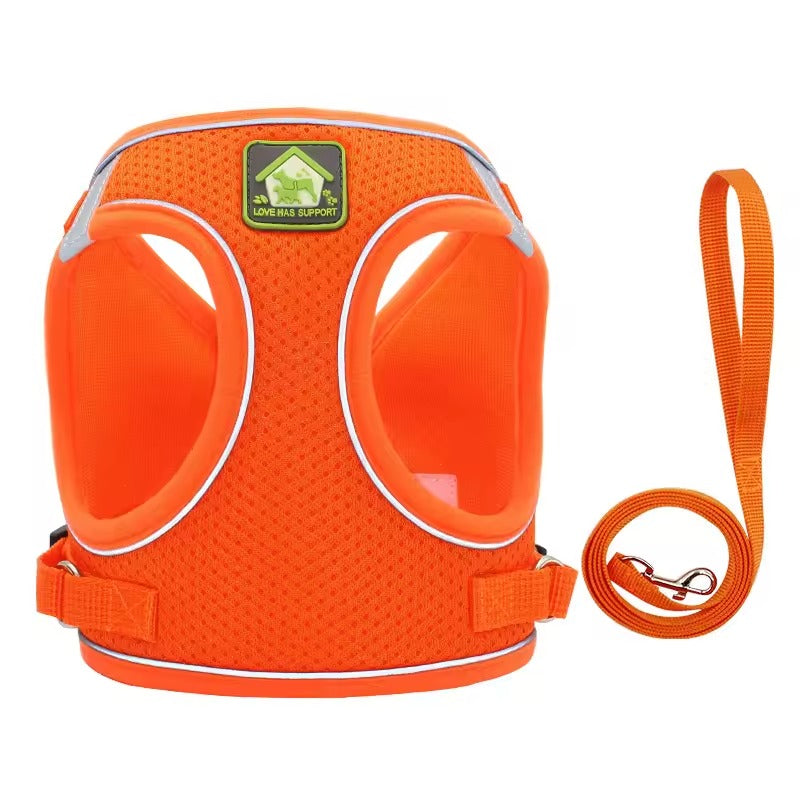 Med vores Reflekterende Mesh Hundevest er bekymringer om synlighed fortid. Det reflekterende materiale sikrer, at din hund er godt synlig selv i svagt lys. Vesten er lavet af slidstærke polyesterblandinger, der både er åndbare og blide mod din hunds hud. Det nemme 'step-in'-design gør det legende let at tage vesten på din hund. Perfekt til travle hundeejere og eventyrlystne hunde, der elsker at udforske!