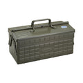 Fremstillet i Japan siden 1969 tilbyder Toyo Steel ST-350 stålværktøjskassen, klar til at rumme alt og alle ting. Ved at bruge deres egen teknologi har Toyo Steel skabt en værktøjskasse af et enkelt stykke stål, hvilket resulterer i ingen skarpe hjørner og et slankt design for ultimativ beskyttelse og opbevaring. Med et udkraget låg har denne værktøjskasse to øverste opbevaringsbakker med i alt ti opbevaringsrum og et hul praktisk placeret til en hængelås for at holde tingene sikre og beskyttede.
