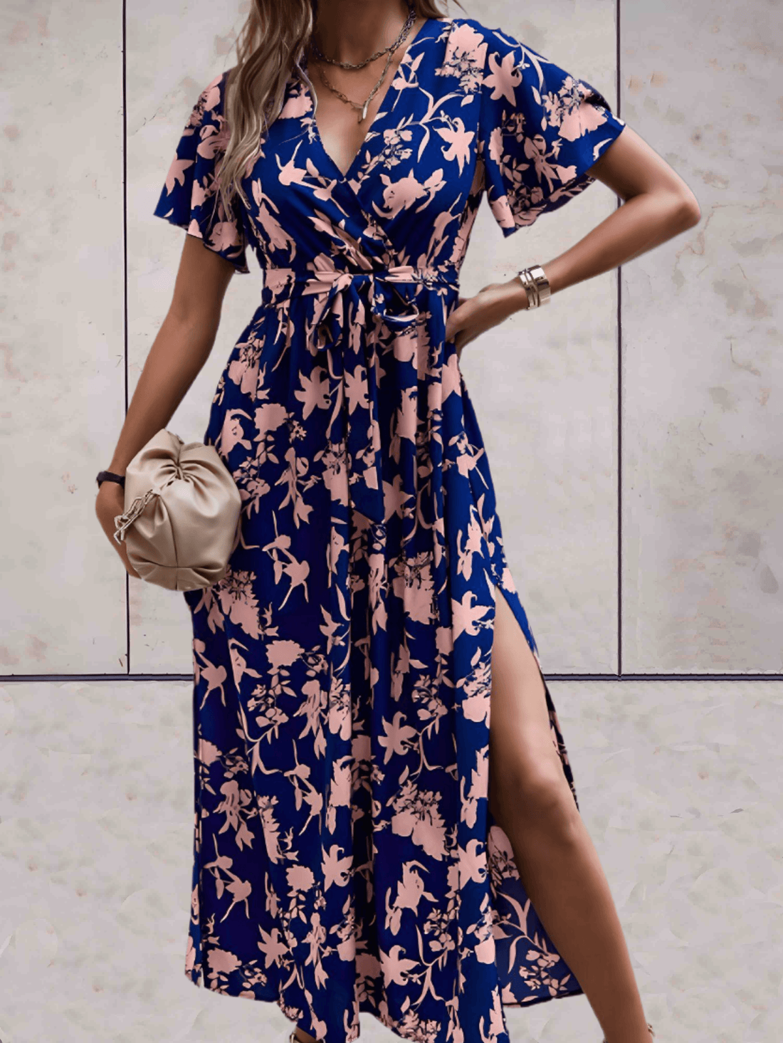 Dulopi Amelia Schickes Midikleid mit floralem Muster und hohem Schlitz