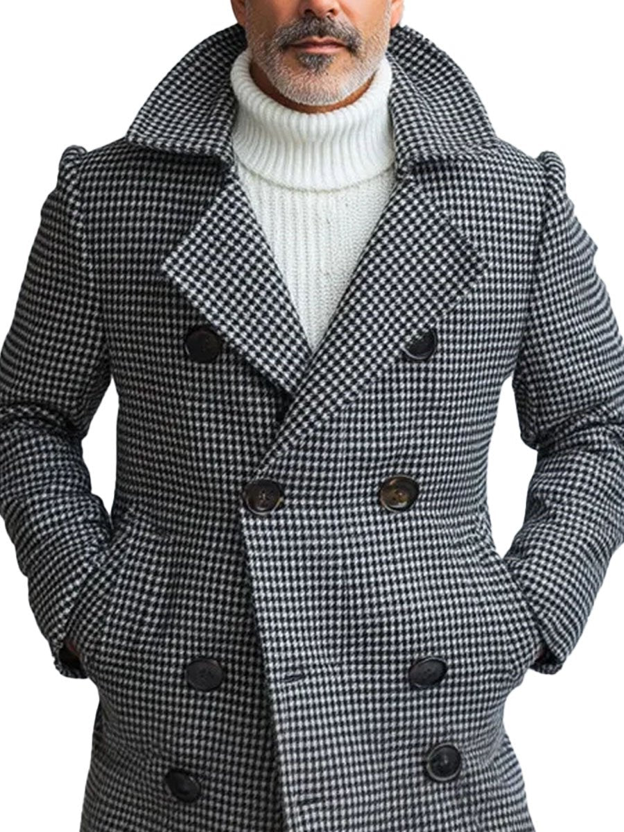 Herren Revers Zweireihig Karierte Warme Wolljacke - Elegant & Stilvoll