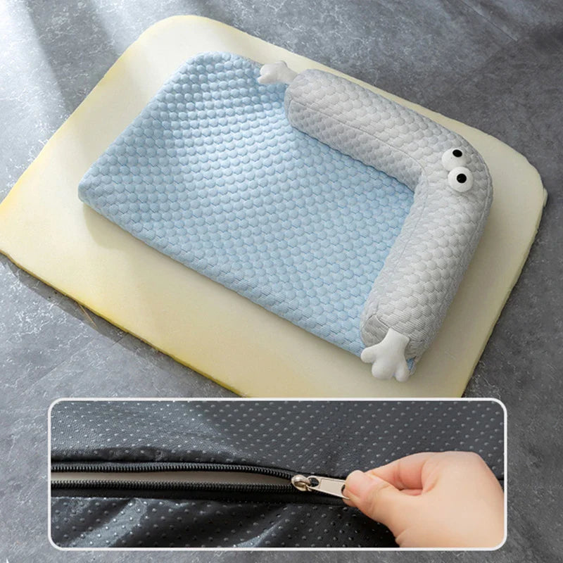 Unsere Kühlmatte bietet nicht nur einen kühlen Schlafplatz, sondern schützt auch die Halswirbel Ihres Hundes dank ihrer weichen Kante. Reduzieren Sie das Risiko von Nackenproblemen und sorgen Sie dafür, dass Ihr Hund in der perfekten Schlafposition liegen kann.