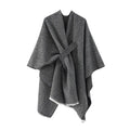 Der Poncho ist mit einem stilvollen Band versehen und bietet einen eleganten und bequemen Look für jede Gelegenheit.