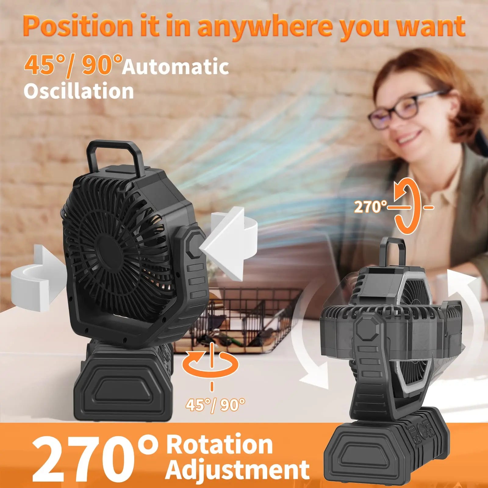 Erleben Sie die Bequemlichkeit und den Komfort unseres tragbaren Campingventilators. Bestellen Sie jetzt und genießen Sie eine kühle Brise, wo immer Sie sind!