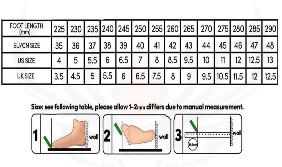 Please note: These shoes may run smaller than you are used to. Therefore, use the size chart below.