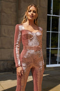 The Tea Glitter Jumpsuit sparkles with its shimmering fabric and is the perfect choice for any special occasion.