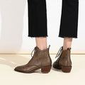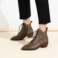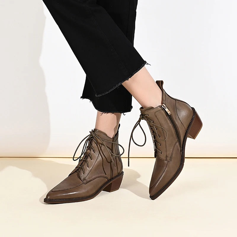 Avec nos bottes pour femmes, vous retournez dans le passé, mais avec une touche moderne. Ces bottes sont la preuve d'une mode intemporelle, avec un bout pointu et des lacets, associés à un talon carré et massif, offrant à la fois hauteur et confort. Fabriquées en cuir véritable de haute qualité, elles promettent durabilité et style, parfaites pour la femme de bureau qui aime faire une déclaration.