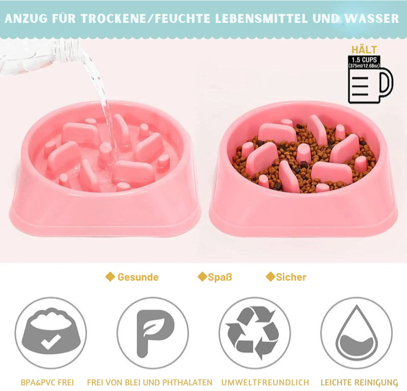 Alimentation lente : Des obstacles spécialement conçus dans le bol ralentissent la prise de nourriture, réduisant ainsi les risques de ballonnements, vomissements et surpoids.