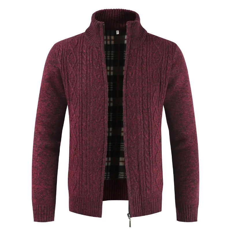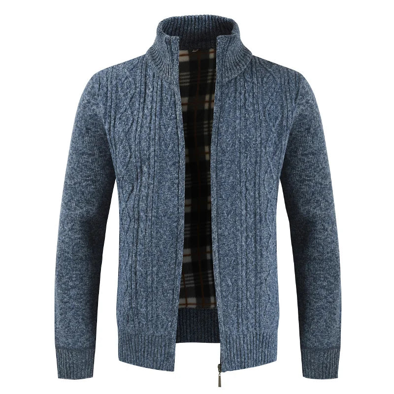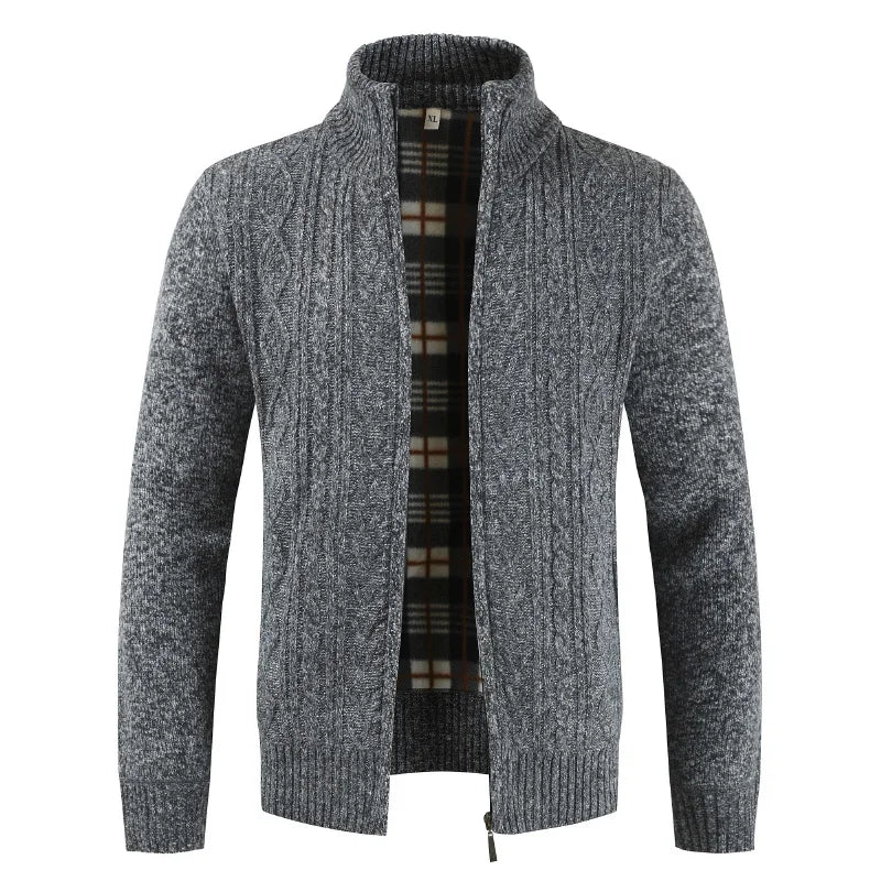 Ce cardigan homme allie design classique et fonctionnalité moderne grâce à sa fermeture éclair pratique.