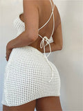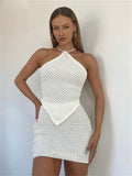 Il combine un élégant top dos nu avec une jupe légère pour un look d'été moderne et frais.