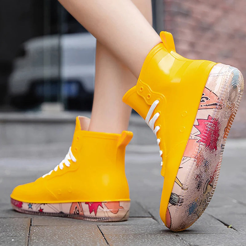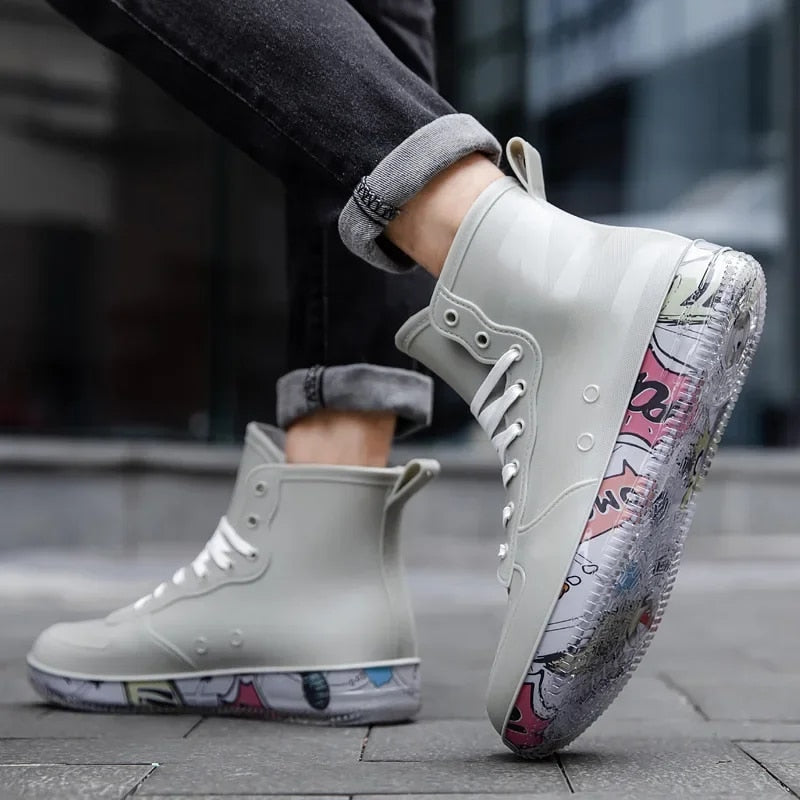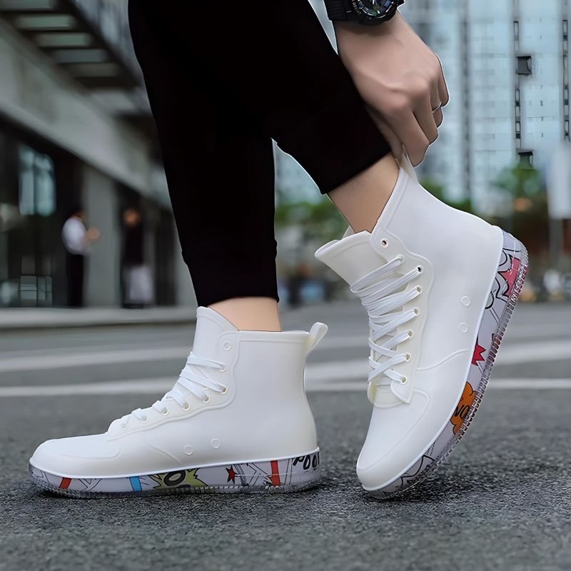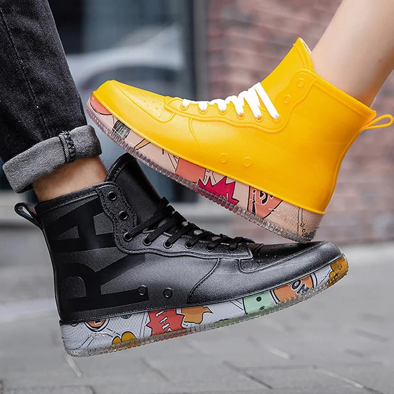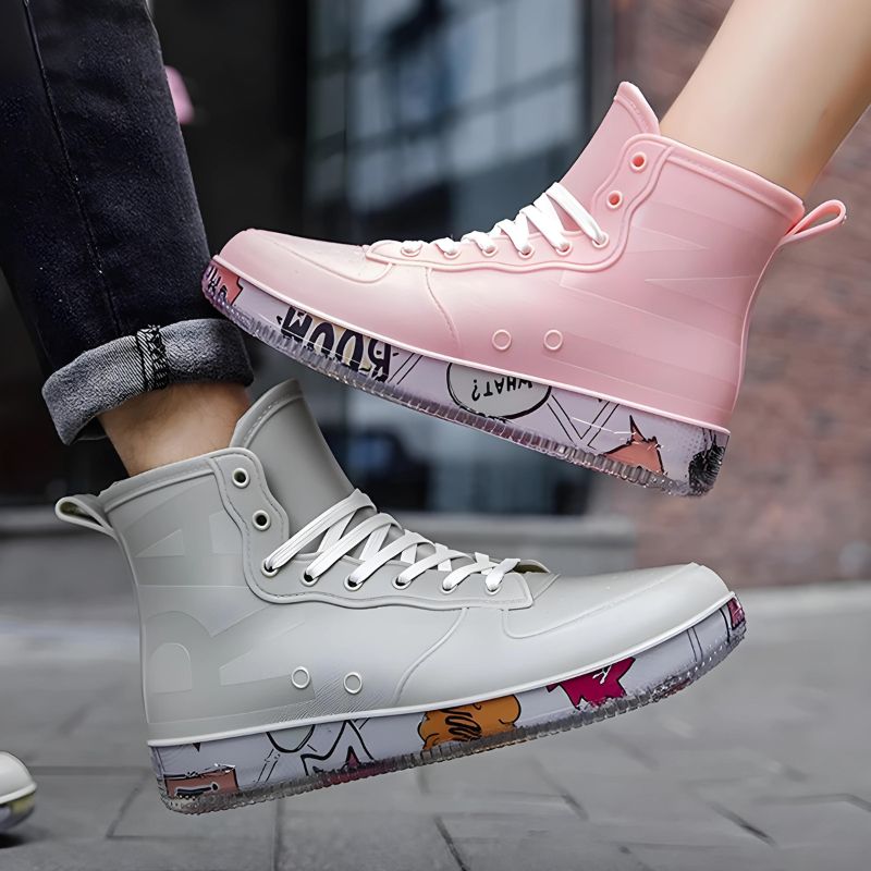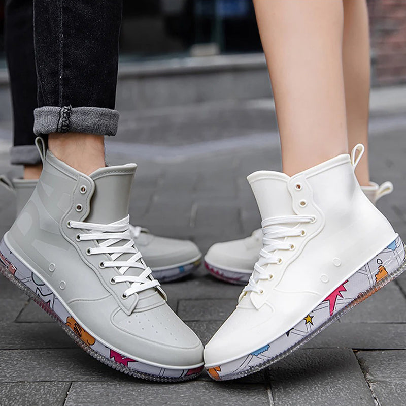 Bezwingen Sie den Regen mit unseren Unisex-Stiefeln, einer perfekten Kombination aus Stil und Funktionalität für Männer und Frauen. Diese Stiefel sind aus strapazierfähigem, wasserdichtem Gummi gefertigt und sorgen dafür, dass Ihre Füße auch bei Nässe trocken und bequem bleiben. Das modische Design macht sie zu einer trendigen Ergänzung für jedes Outfit und eignet sich für verschiedene Anlässe.