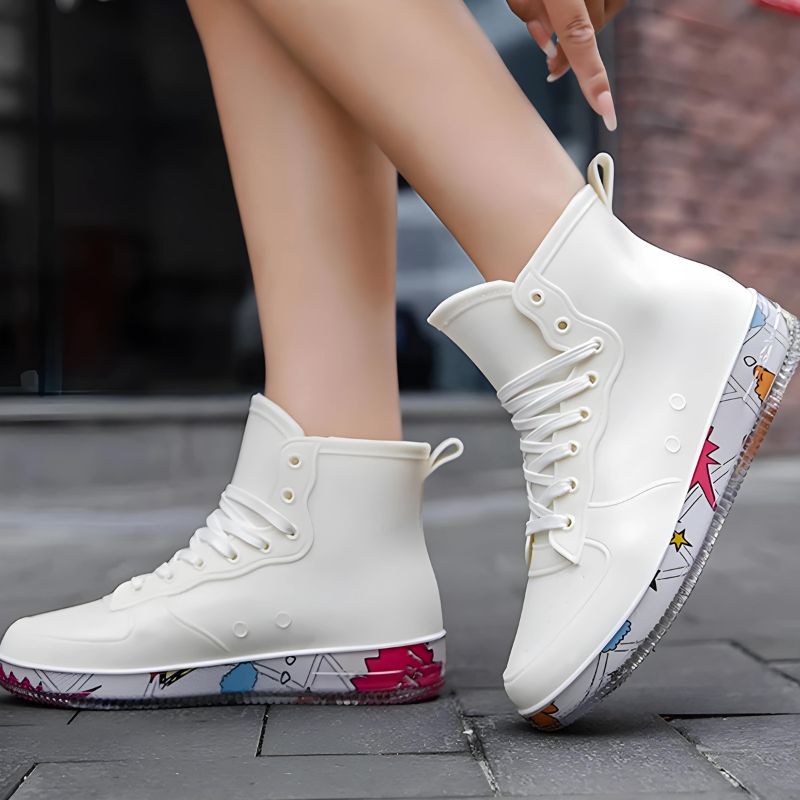 Dank der rutschfesten Sohle bieten sie eine hervorragende Bodenhaftung, so dass rutschige Oberflächen keine Gefahr darstellen. Ihre robuste Konstruktion widersteht harten Arbeitsumgebungen, während das schlichte Design für Freizeitkleidung geeignet ist. Ideal für alle, die eine zuverlässige, modische und funktionelle Schuhwerklösung für Regentage oder anspruchsvolle Jobs suchen.
