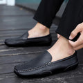 Erleben Sie Luxus mit unseren Leder-Slippern, bei denen klassischer Stil auf modernen Komfort trifft. Aus hochwertigem Echtleder gefertigt, bieten diese Slipper einen eleganten, raffinierten Look, ohne Kompromisse beim Komfort einzugehen. Das atmungsaktive Design, das durch die optionale Aushöhlung noch verstärkt wird, sorgt dafür, dass Ihre Füße den ganzen Tag lang kühl und bequem bleiben.