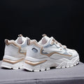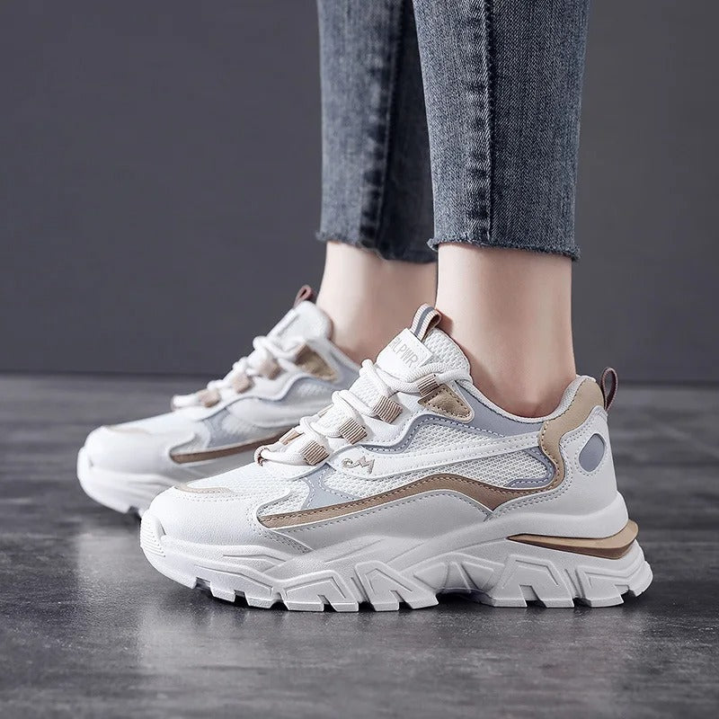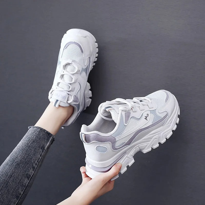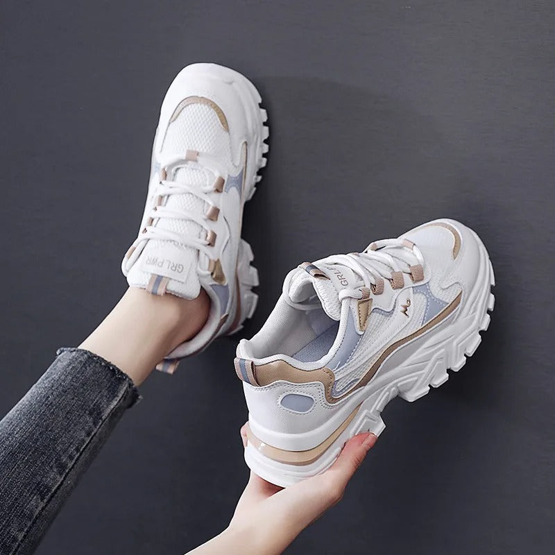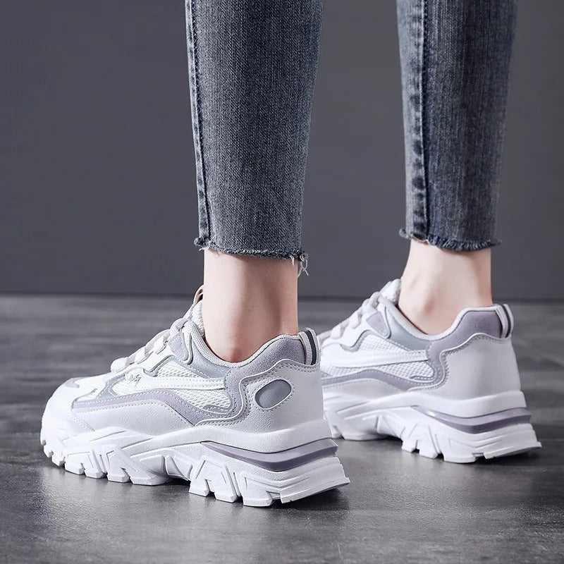 Tauchen Sie ein in eine Welt, in der sich Stil und Zweckmäßigkeit in unseren dicken Sneakers kreuzen. Unverzichtbar für die moderne Frau, die ein Statement setzen möchte, liefert ihre erhöhte Plattform einen bemerkenswerten Schub an Statur neben einem fesselnden Aussehen, das die Blicke auf sich zieht.