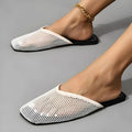 Unsere flachen Pantoletten sind der Inbegriff von Eleganz und Komfort. Diese sexy Mesh-Slipper mit geschlossener Spitze sind ein modisches Statement und zeichnen sich durch ihr schickes, quadratisches Design aus. Das atmungsaktive Mesh-Material sorgt dafür, dass Ihre Füße kühl und bequem bleiben, was sie perfekt für jede Gelegenheit im Freien macht.