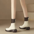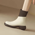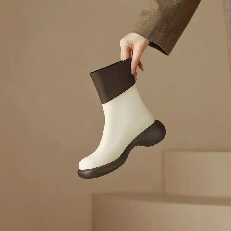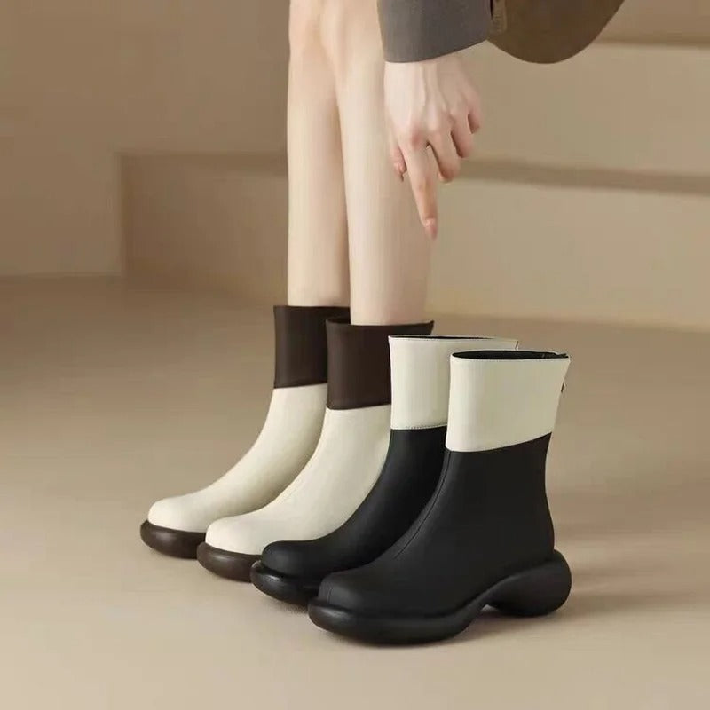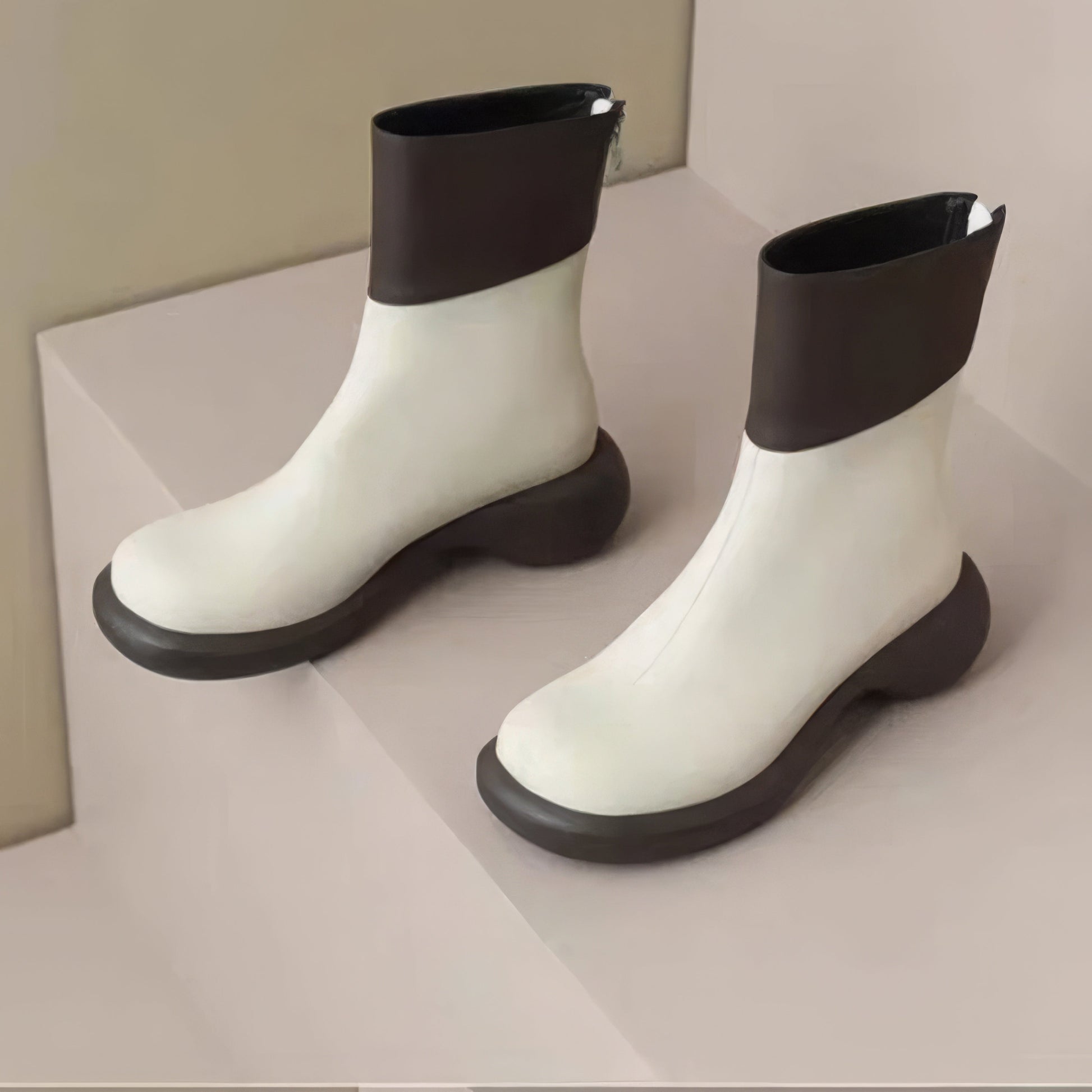 Erhöhen Sie Ihren Style-Quotienten mit unseren trendigen Stiefeln. Diese stilvollen Stiefel haben eine runde Spitze und ein schickes zweifarbiges Farbschema, das jedem Ensemble Raffinesse verleiht. Der praktische Reißverschluss auf der Rückseite sorgt für müheloses Tragen, während die weiche und bequeme Sohle ganztägigen Komfort garantiert.
