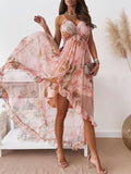 Bohemian Blütentraum - V-Ausschnitt, rückenfrei, Blumendruck