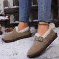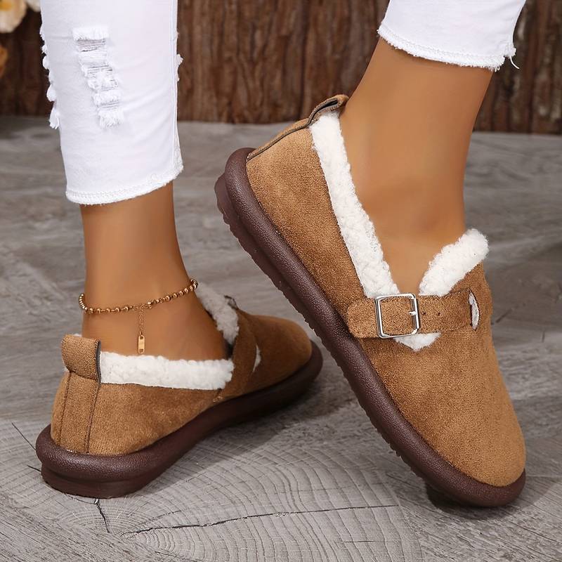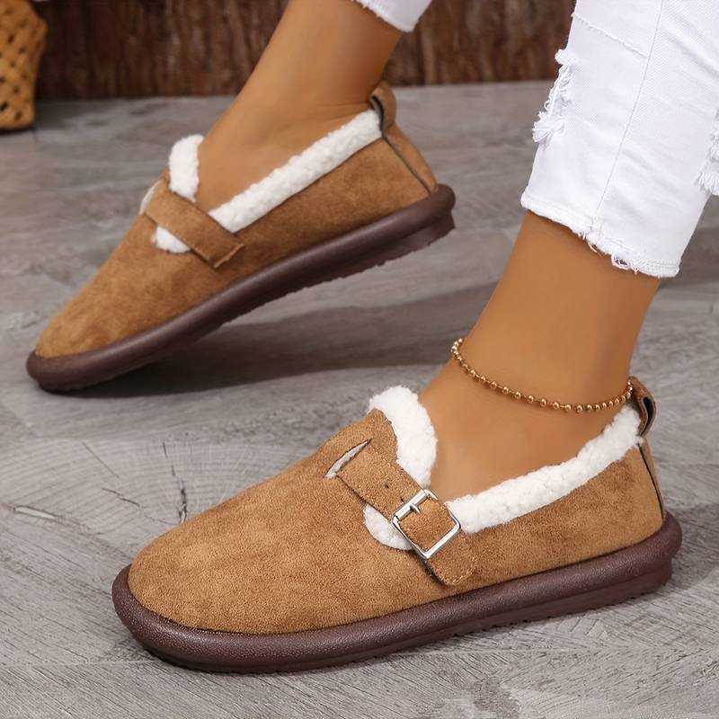 Wir stellen unsere flachen Lederschuhe vor, der Inbegriff von Komfort und Stil für die moderne Frau. Diese Schuhe sind mit weicher, plüschiger Wärme im Hinterkopf gefertigt, um sicherzustellen, dass Ihre Füße gemütlich und bequem bleiben, egal ob Sie an einem kühlen Tag unterwegs sind oder einfach nur einen lässigen Ausflug genießen. Die elegante Gürtelschnalle auf der Vorderseite verleiht den Schuhen einen Hauch von Raffinesse und macht sie vielseitig für jeden Look.
