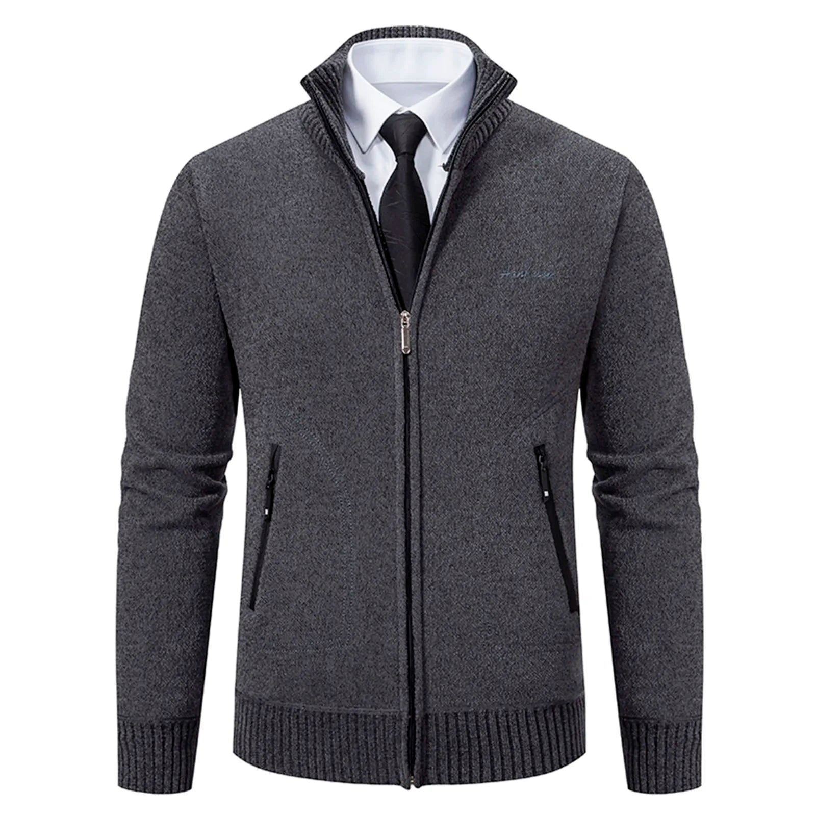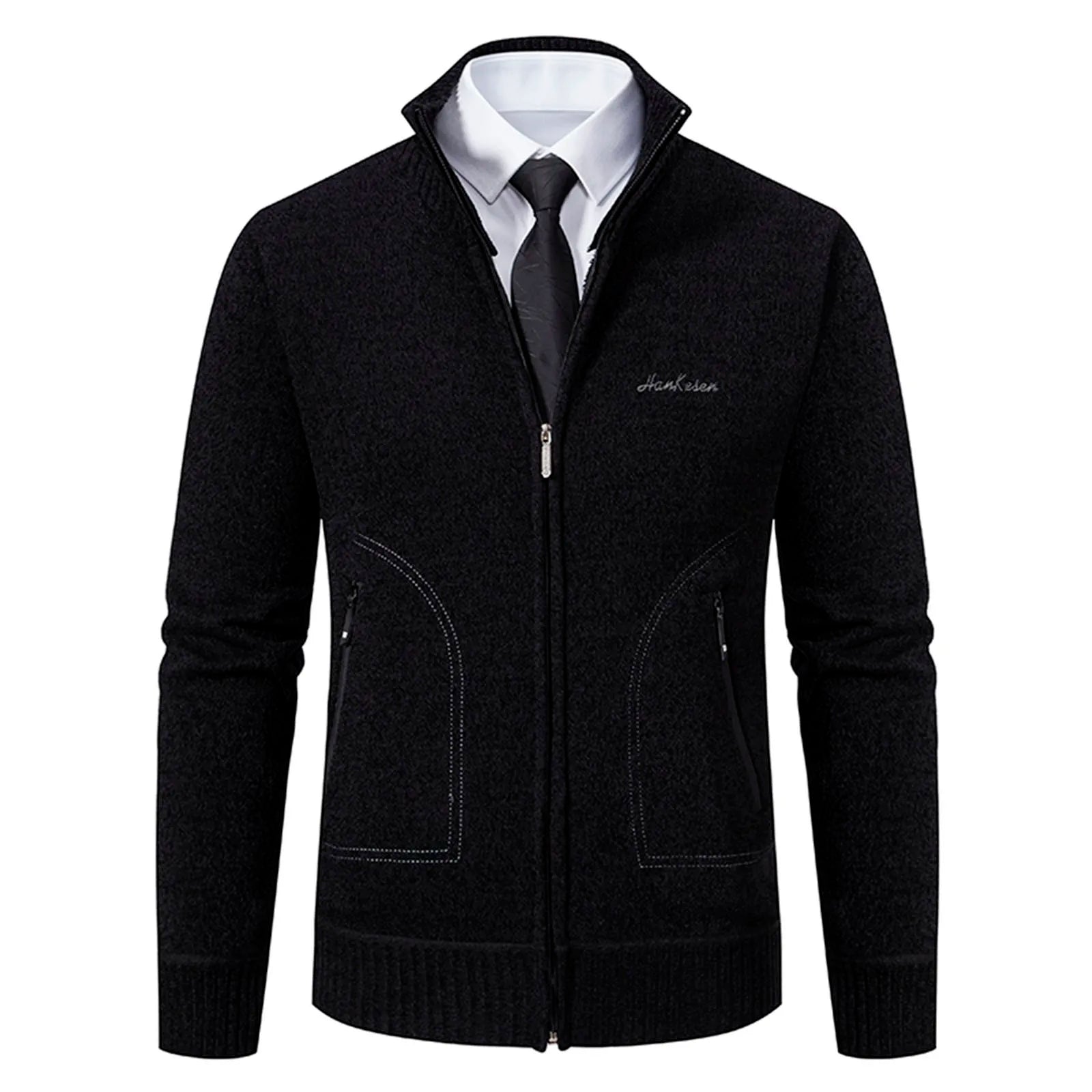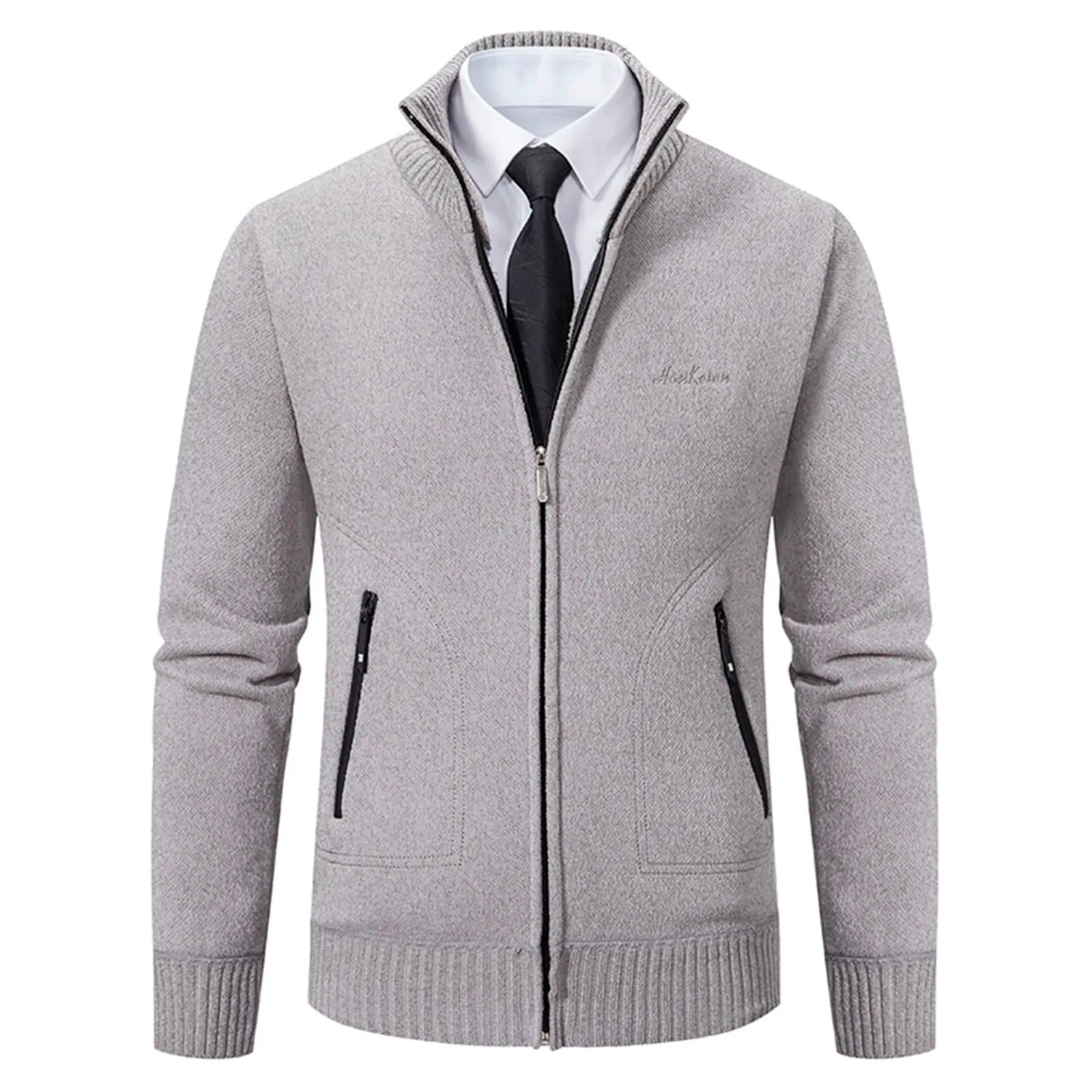 Der klassische Stehkragen und der Reißverschluss bieten sowohl Komfort als auch Stil und eignen sich daher perfekt zum Kombinieren oder zum alleinigen Tragen. Der weiche Strickstoff sorgt für Wärme und Komfort, während die vielen Taschen praktischen Stauraum bieten.