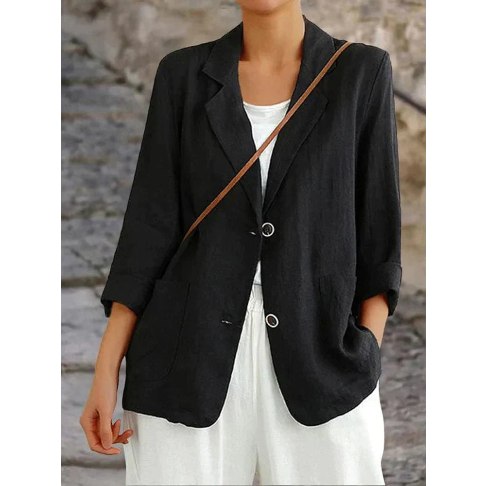 Dieser Blazer aus hochwertigem Leinenstoff bietet eine leichte und atmungsaktive Option für formelle und semi-formelle Anlässe. Mit seinem zeitlosen Design und modernen Schnitt passt er sowohl zu klassischen als auch zu lässigen Outfits.