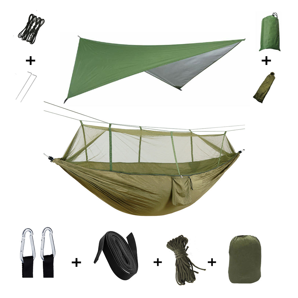 Erleben Sie ultimativen Komfort und Schutz bei Ihren Outdoor-Abenteuern mit der Camping-Hängematte mit Regenhülle und Moskitonetz