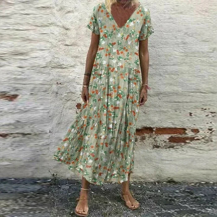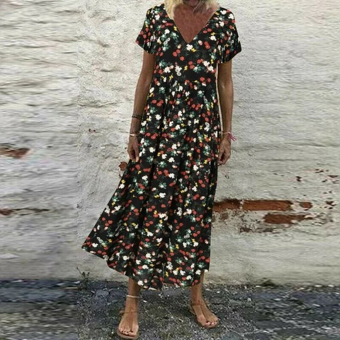 Geblümtes Kleid mit V-Ausschnitt – Luftig & Elegant