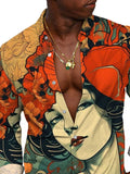 Verleihen Sie Ihrer Garderobe einen Hauch von Retro-Flair mit dem Retro Beauty Print Casual Long Sleeve Shirt für Herren!