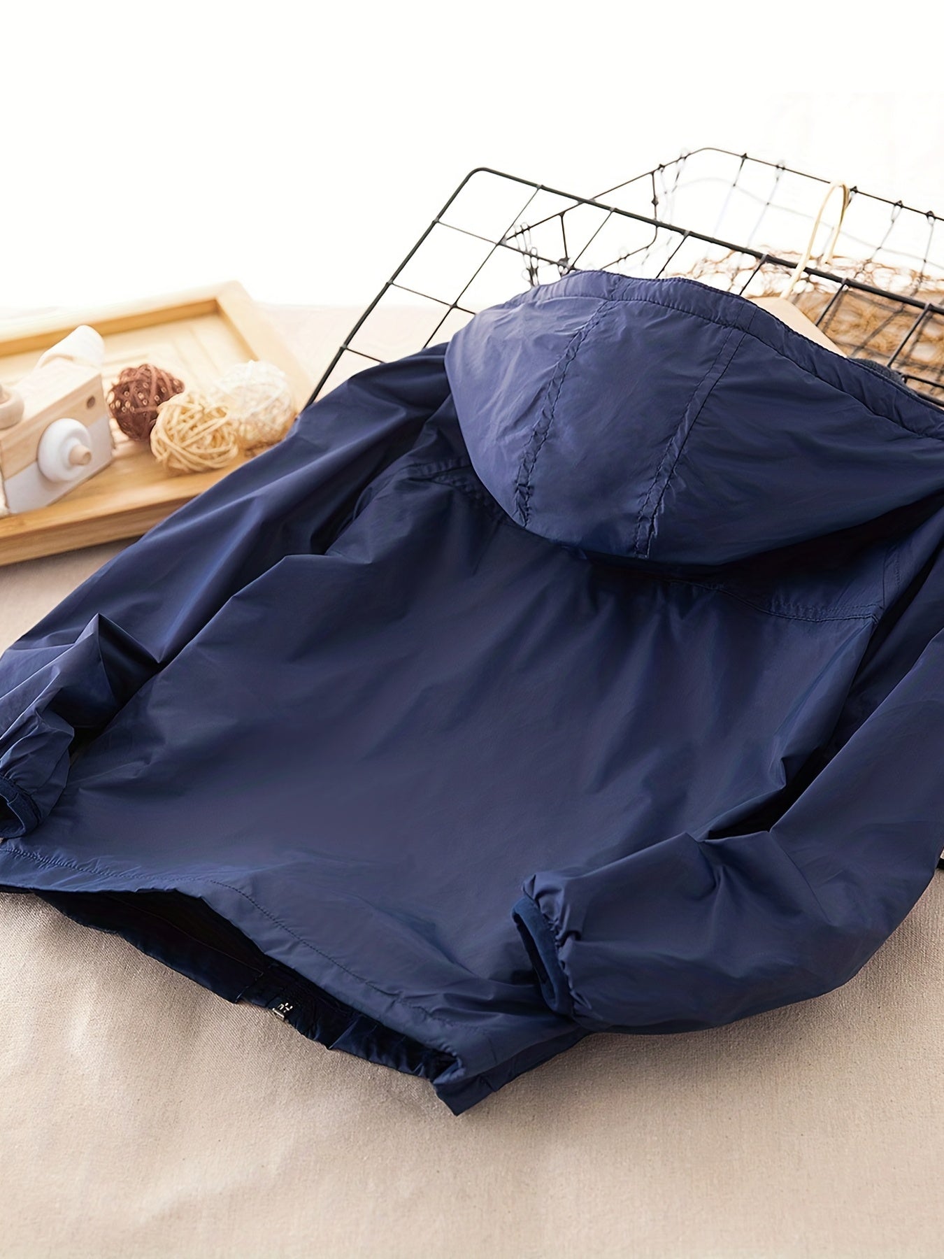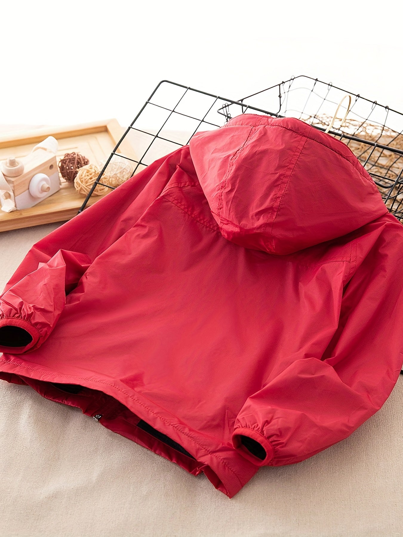 Hergestellt aus 100 % Polyesterfaser, bietet Jelle Schutz bei Regen, ist leicht zu tragen und super pflegeleicht. Die Kapuze, langen Ärmel und der Reißverschluss sorgen für praktische Alltagstauglichkeit, während der einfarbige Look und der Umschlagkragen dem Mantel einen modernen Touch geben.