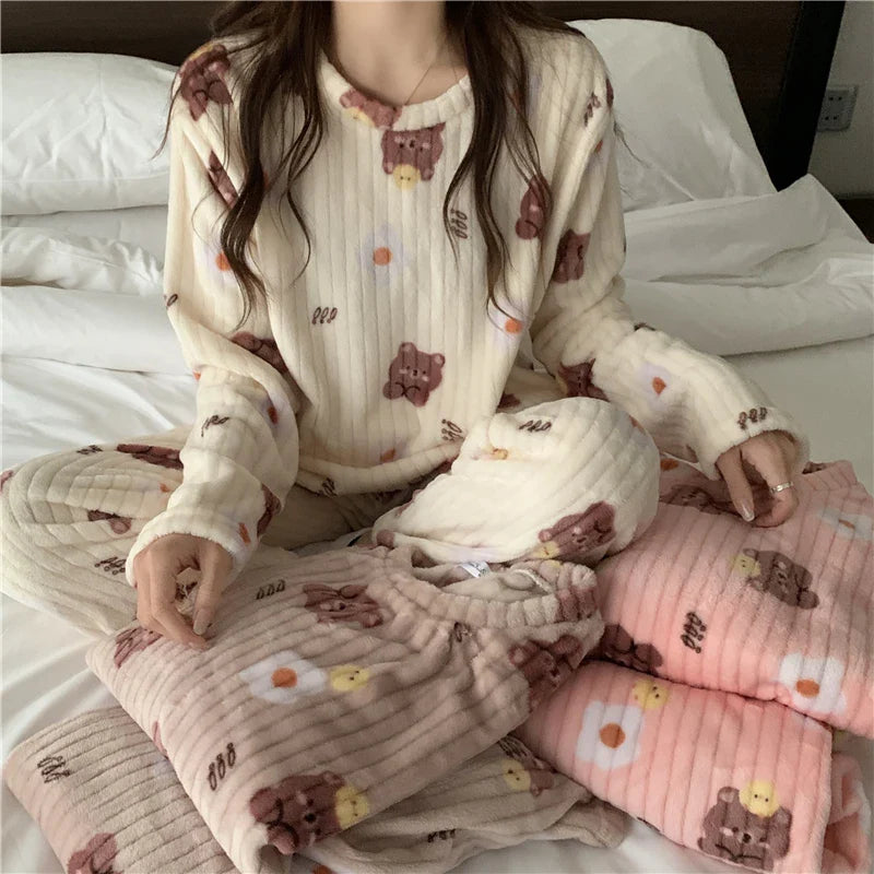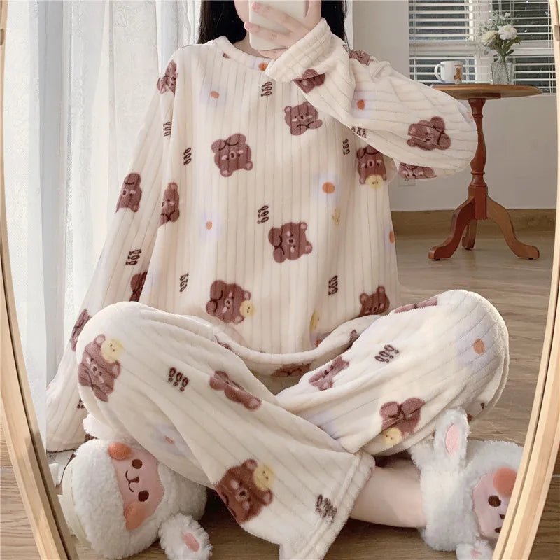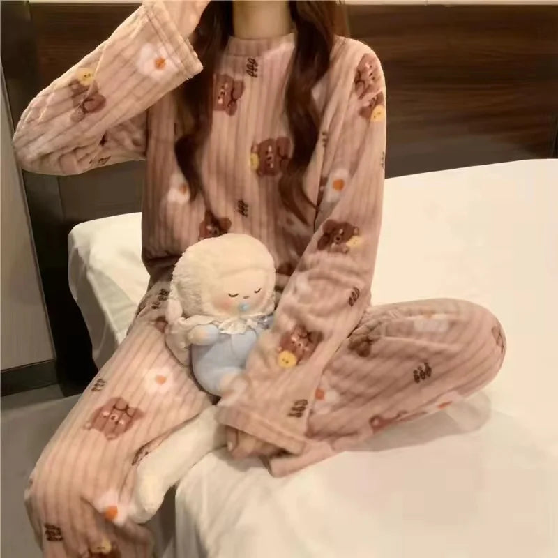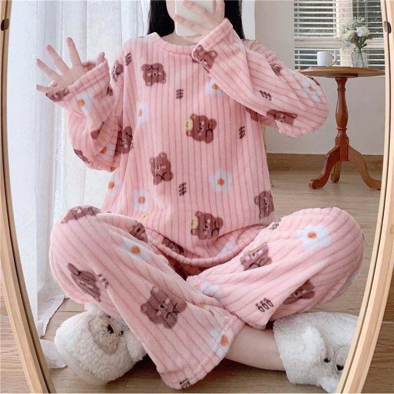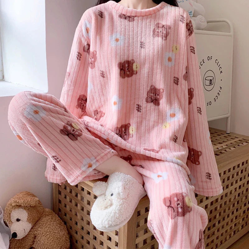 Unser Bunte Cartoon Fleece Pyjama Set bietet die ideale Kombination aus Wärme und Stil. Hergestellt aus hochwertigem Fleece, sorgt dieses Set dafür, dass du auch in den kältesten Nächten gemütlich und komfortabel bleibst. Das süße Cartoon-Design verleiht deiner nächtlichen Routine einen verspielten Twist, während der lockere Schnitt dafür sorgt, dass du volle Bewegungsfreiheit hast, während du schläfst. Auf Wiedersehen kalte Nächte, hallo stilvolles Entspannen!