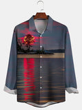 Vervollständigen Sie Ihr Outfit! Ergänzen Sie Ihre Kollektion mit dem Langarmhemd für Herren mit Landschaftsaufdruck bei Sonnenaufgang und genießen Sie Stil und Komfort, wo immer Sie sind.