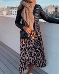 Mit seinem V-Ausschnitt, dem femininen A-Linien-Schnitt und dem charmanten Leopardenprint ist dieses Kleid ein echter Blickfang.