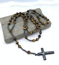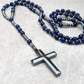 Mit natürlichen Tigerauge- und Lapislazuli-Perlen sowie einem Kreuzanhänger strahlt sie Stärke, Schutz und spirituelle Tiefe aus.