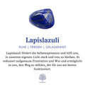 • Natürliche Edelsteine: Tigerauge stärkt Selbstvertrauen und schützt vor negativen Energien, Lapislazuli fördert Weisheit und Intuition.