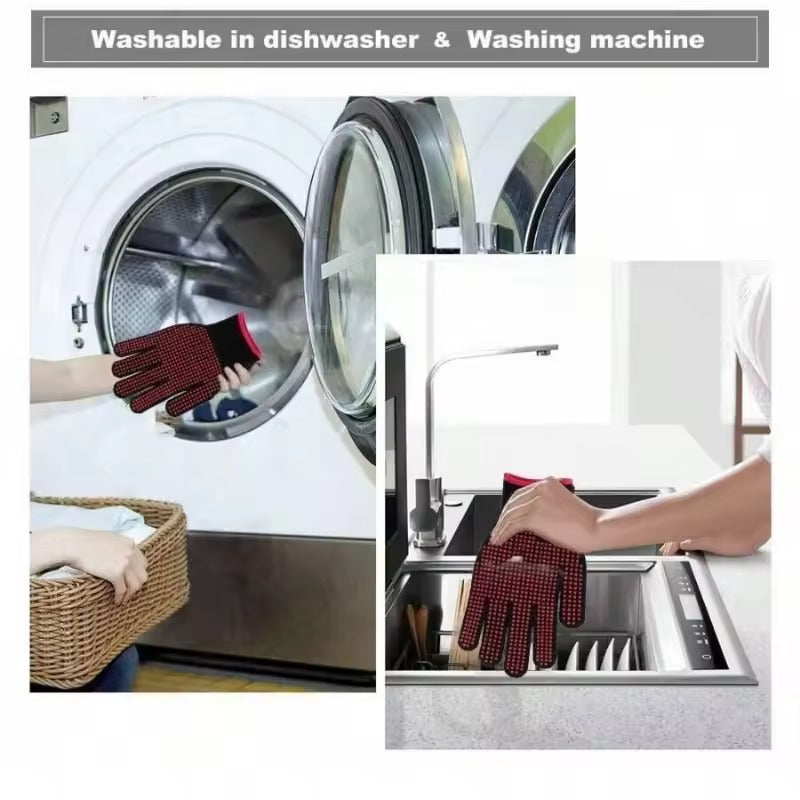 Dank der rutschfesten Beschichtung bieten die Handschuhe einen sicheren Griff, selbst wenn die Hände feucht sind. Dies verhindert Unfälle und ermöglicht ein sicheres Hantieren in der Küche, egal ob beim Backen oder Braten.